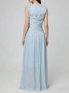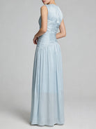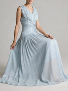 Trend4us Elegant Ruched V-Neck Chiffon Maxi Dress