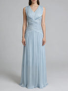 Grace every room you walk into. This ankle-length chiffon maxi dress is crafted for the woman who commands attention effortlessly — a deep V-neckline, empire waistline, and softly ruched A-line silhouette that flows beautifully with every step. Whether it's a garden party, a formal dinner, or a special occasion, this dress is your most elegant answer.