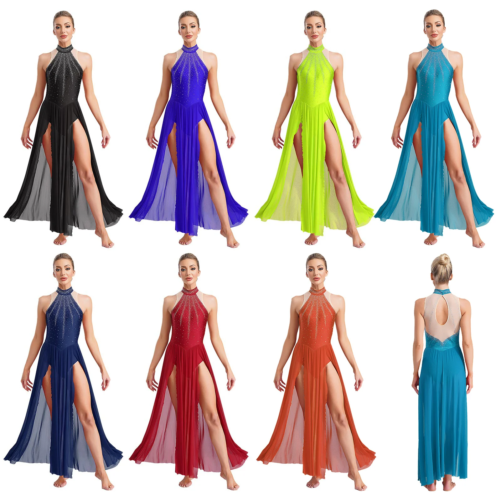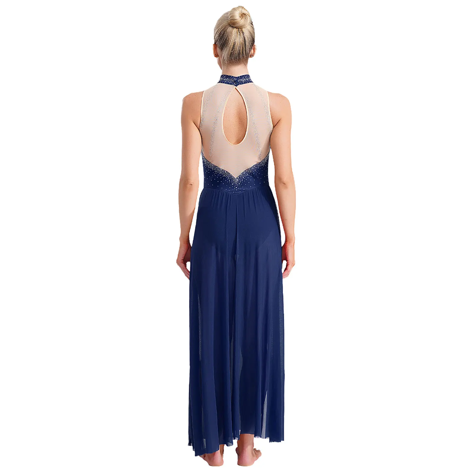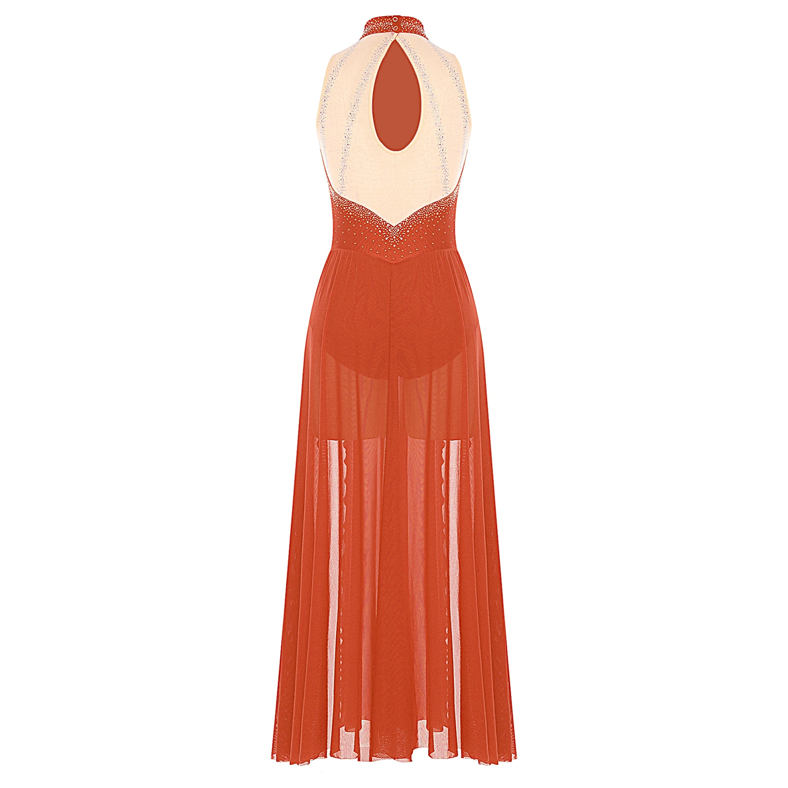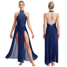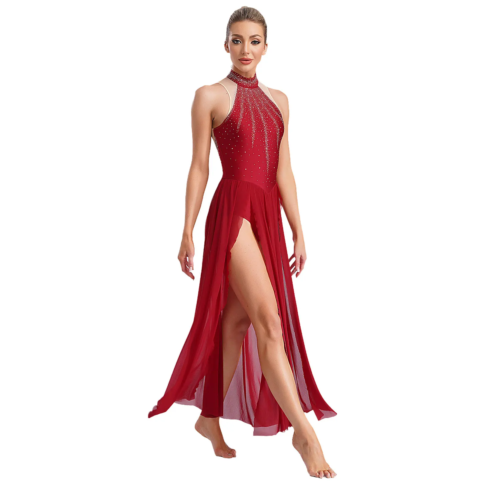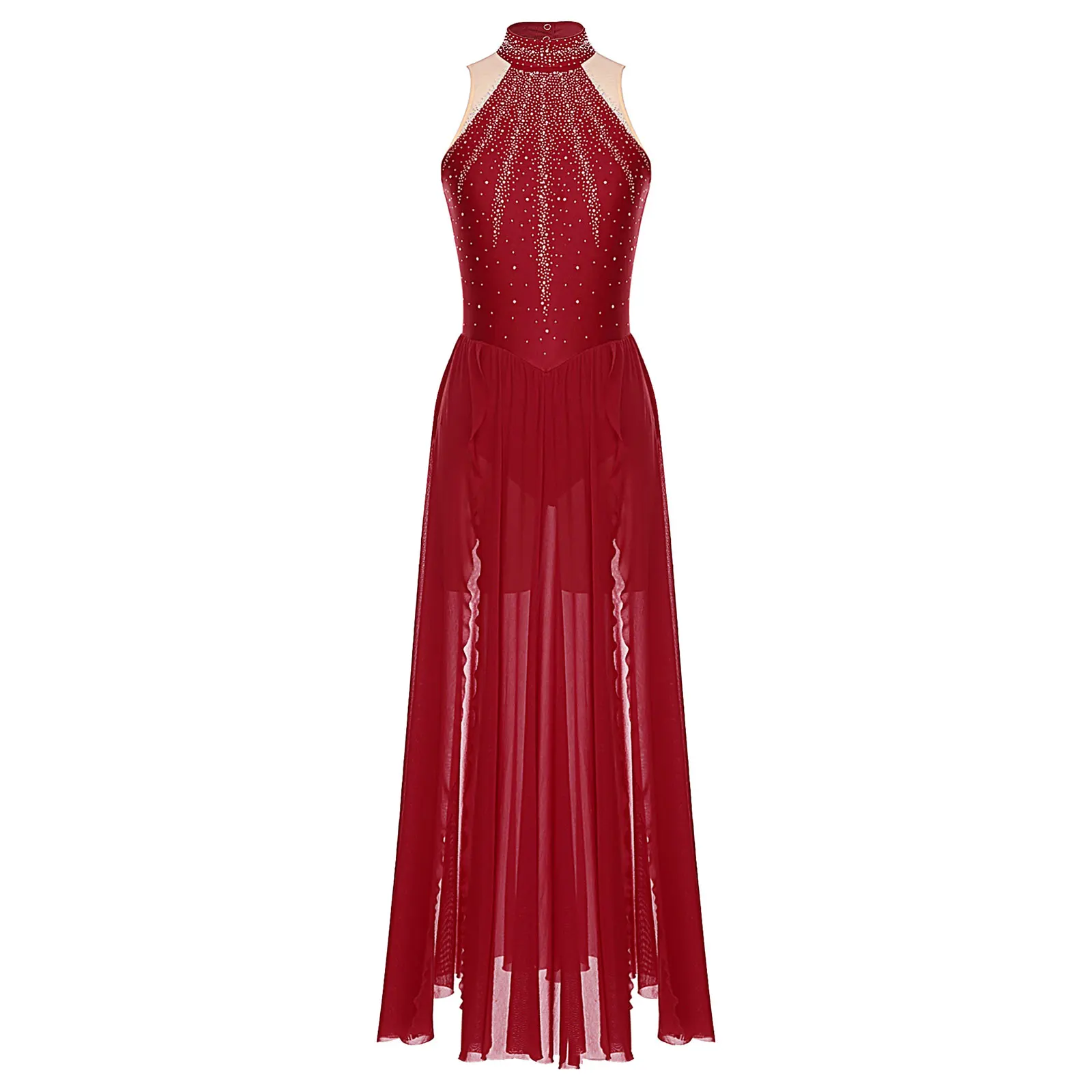 Trend4us Rhinestone Halter Leotard Dance Maxi Dress