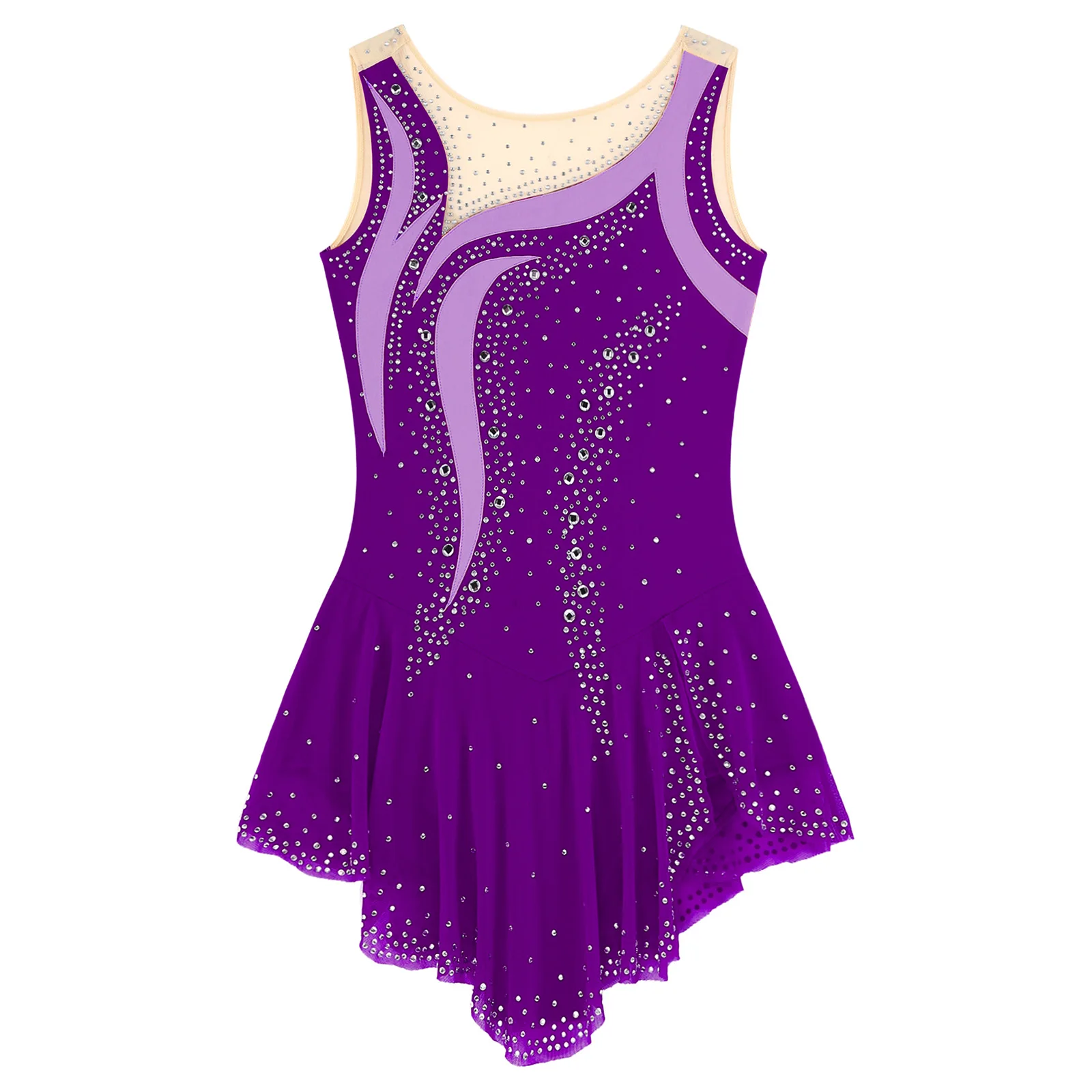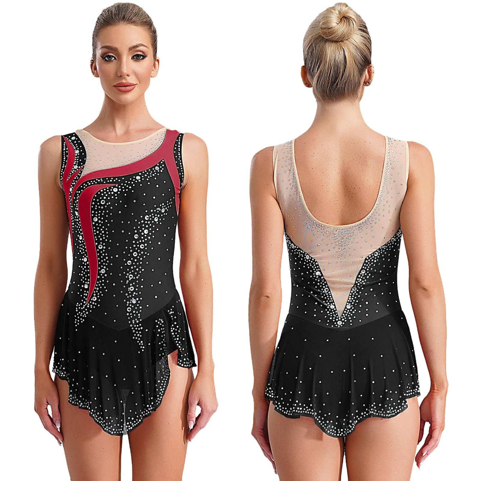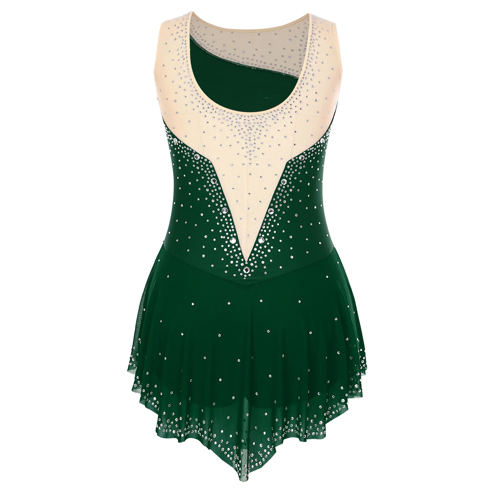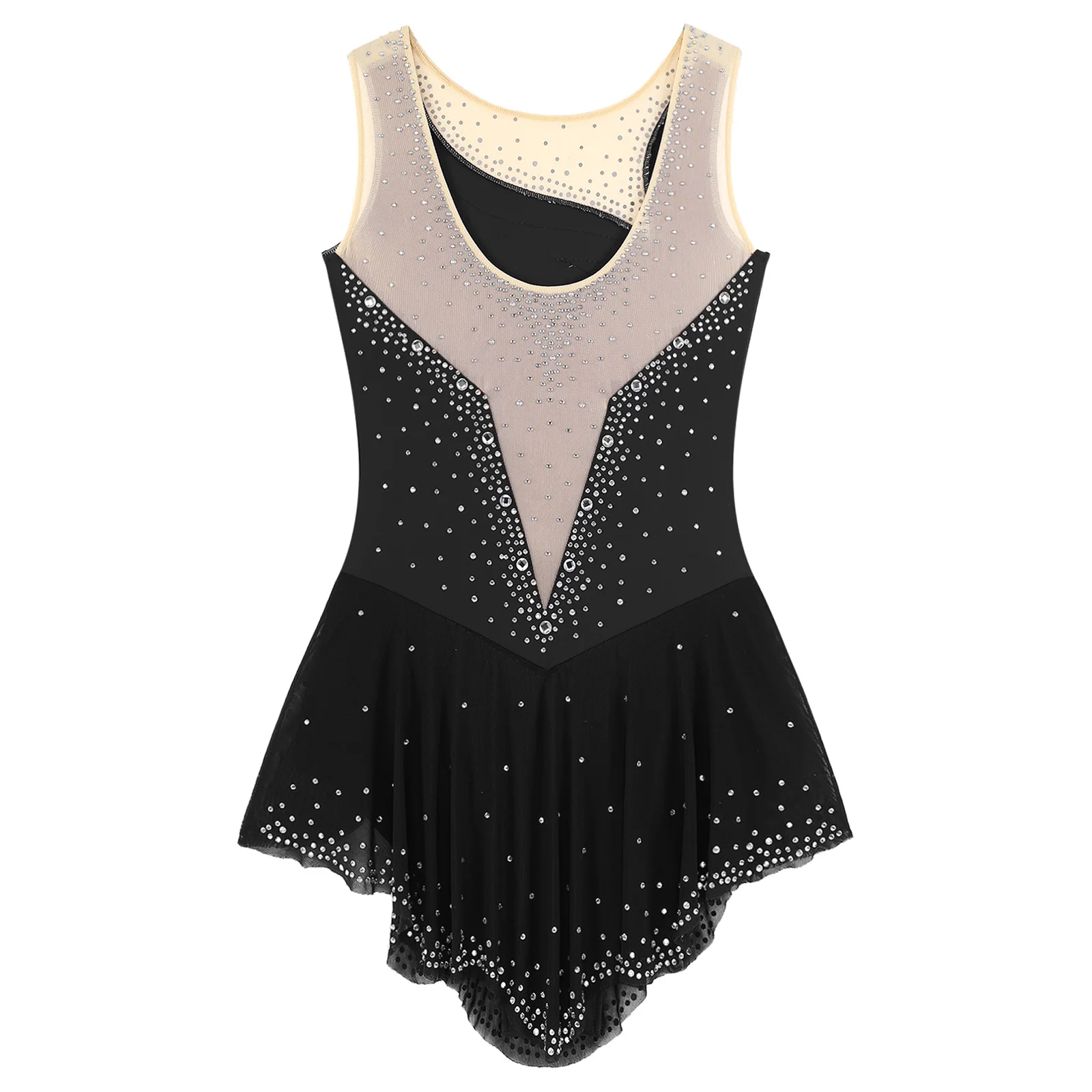 Trend4us Rhinestone Mesh Skating & Dance Leotard Dress