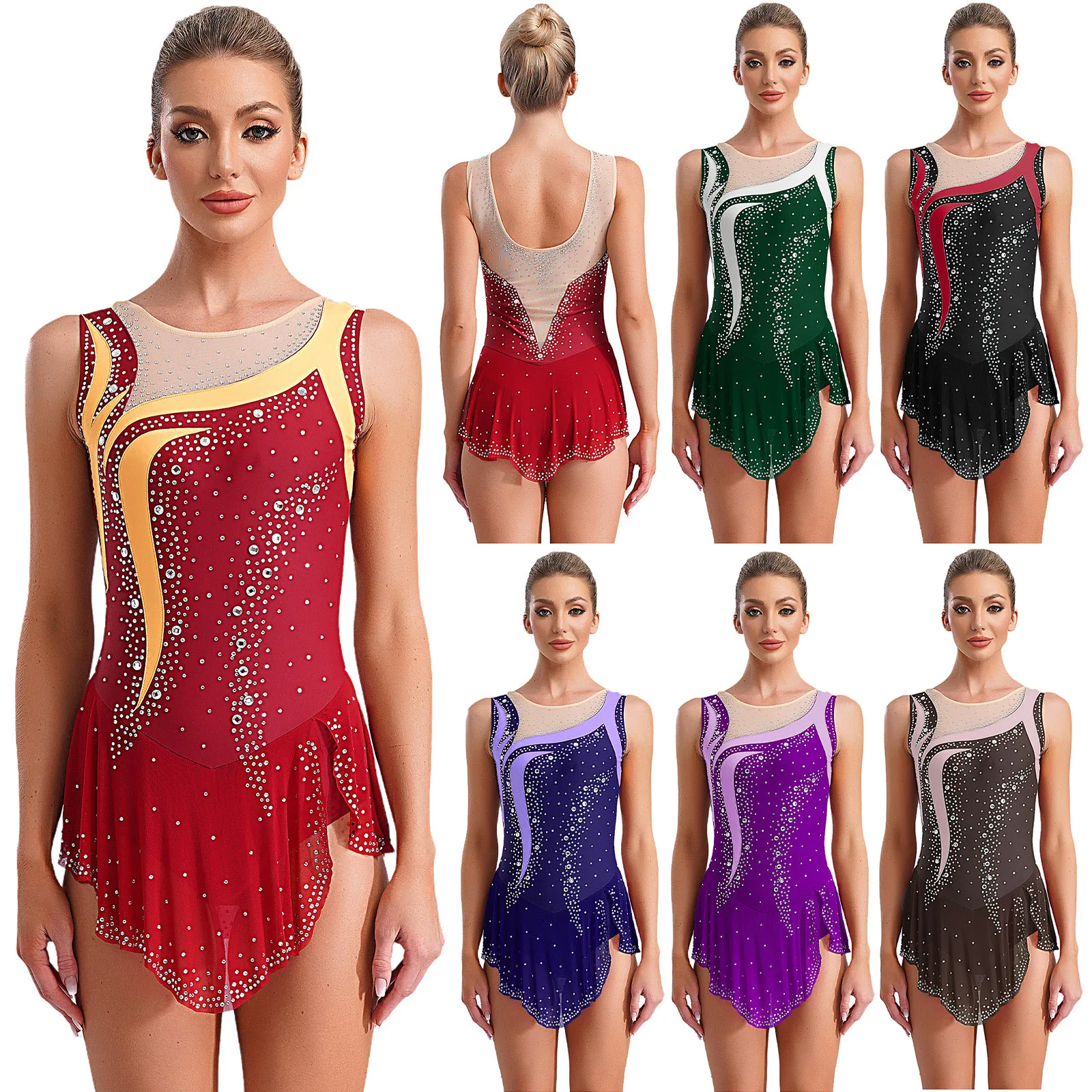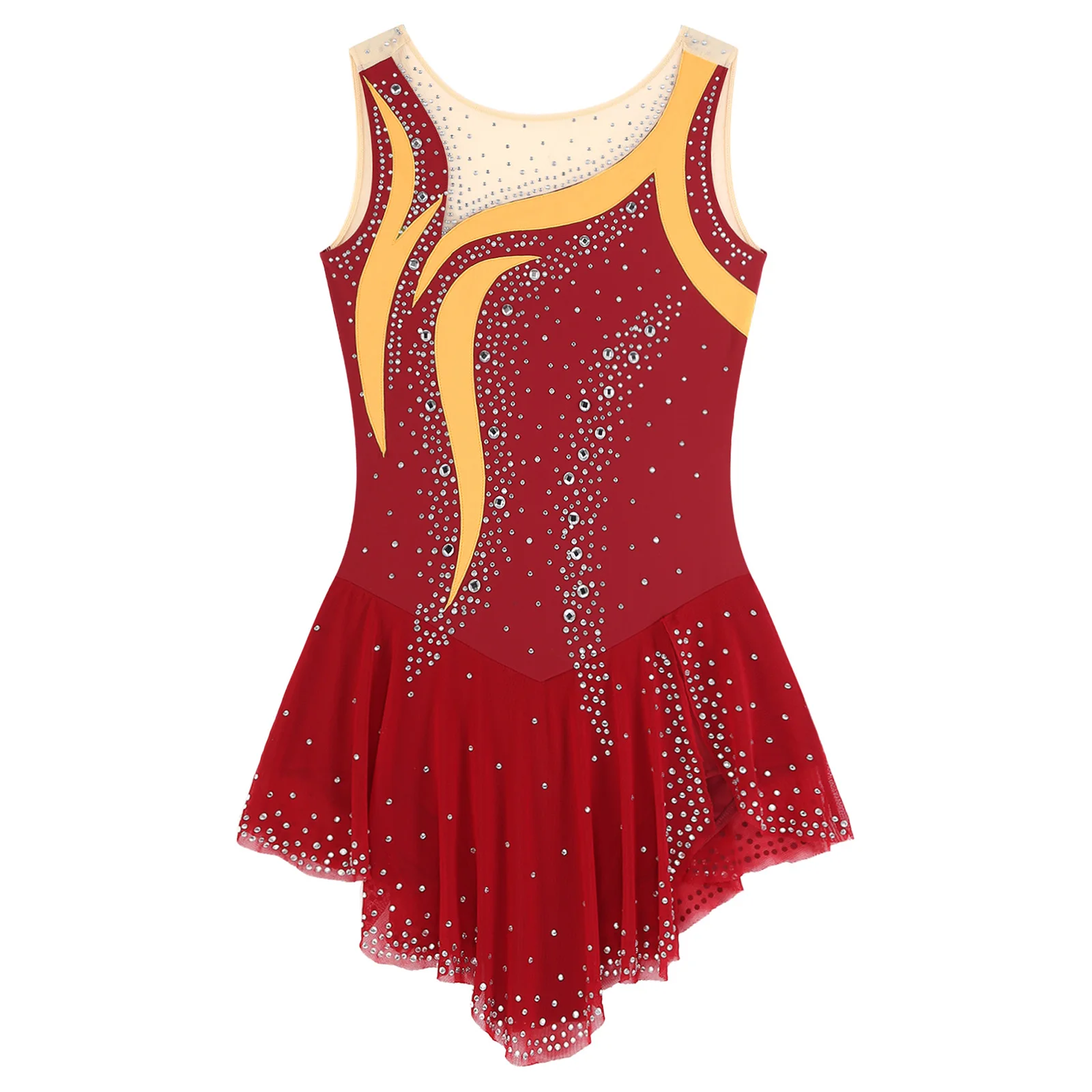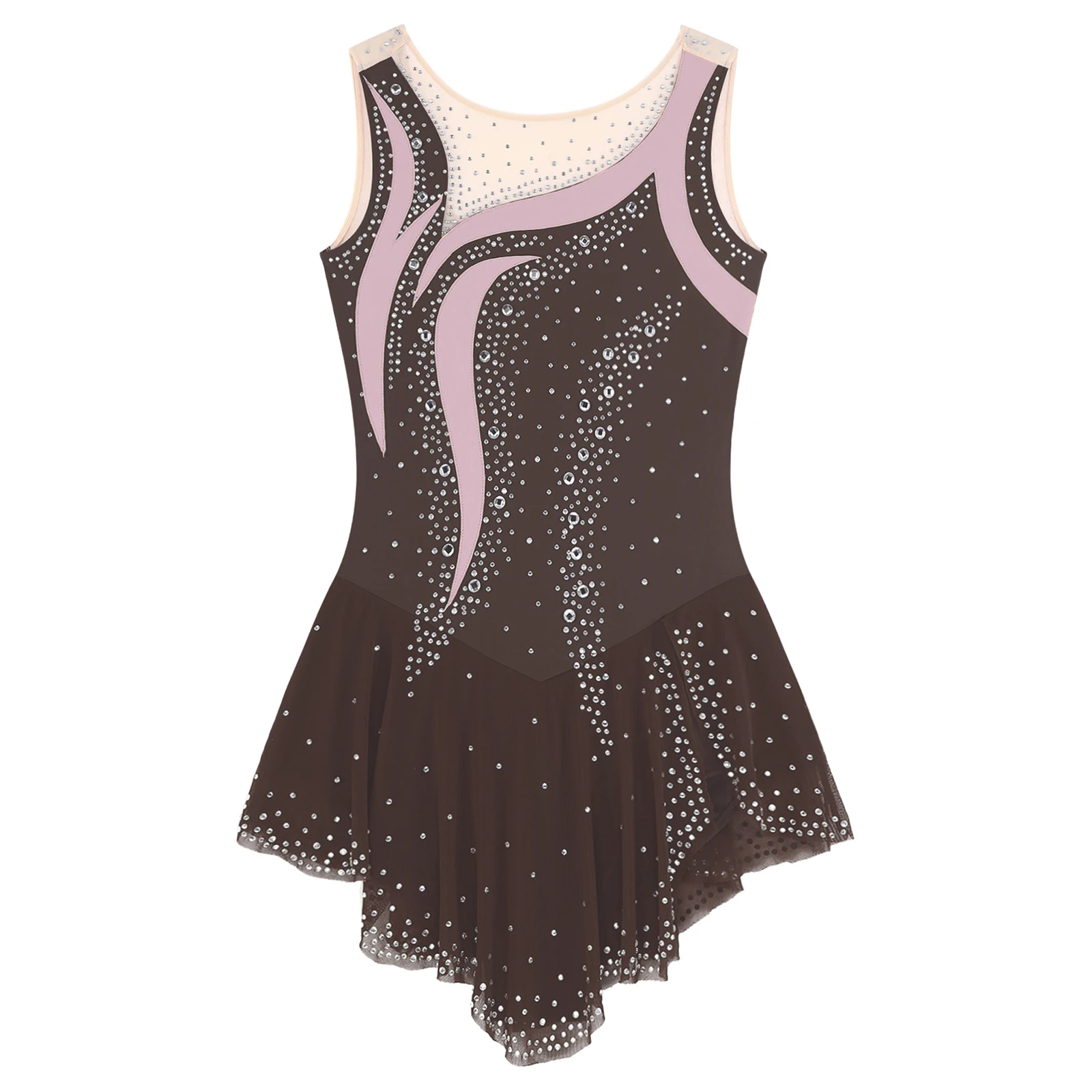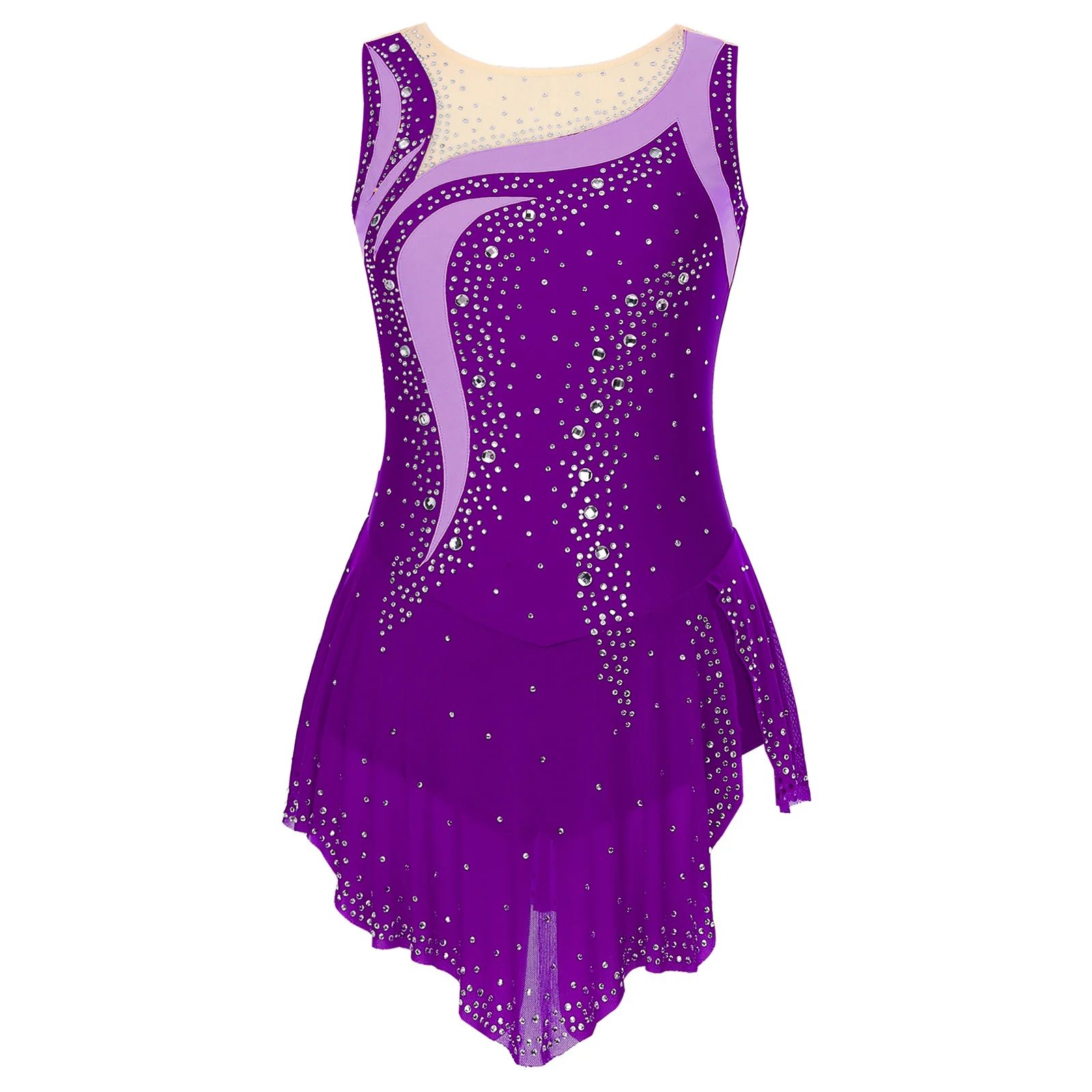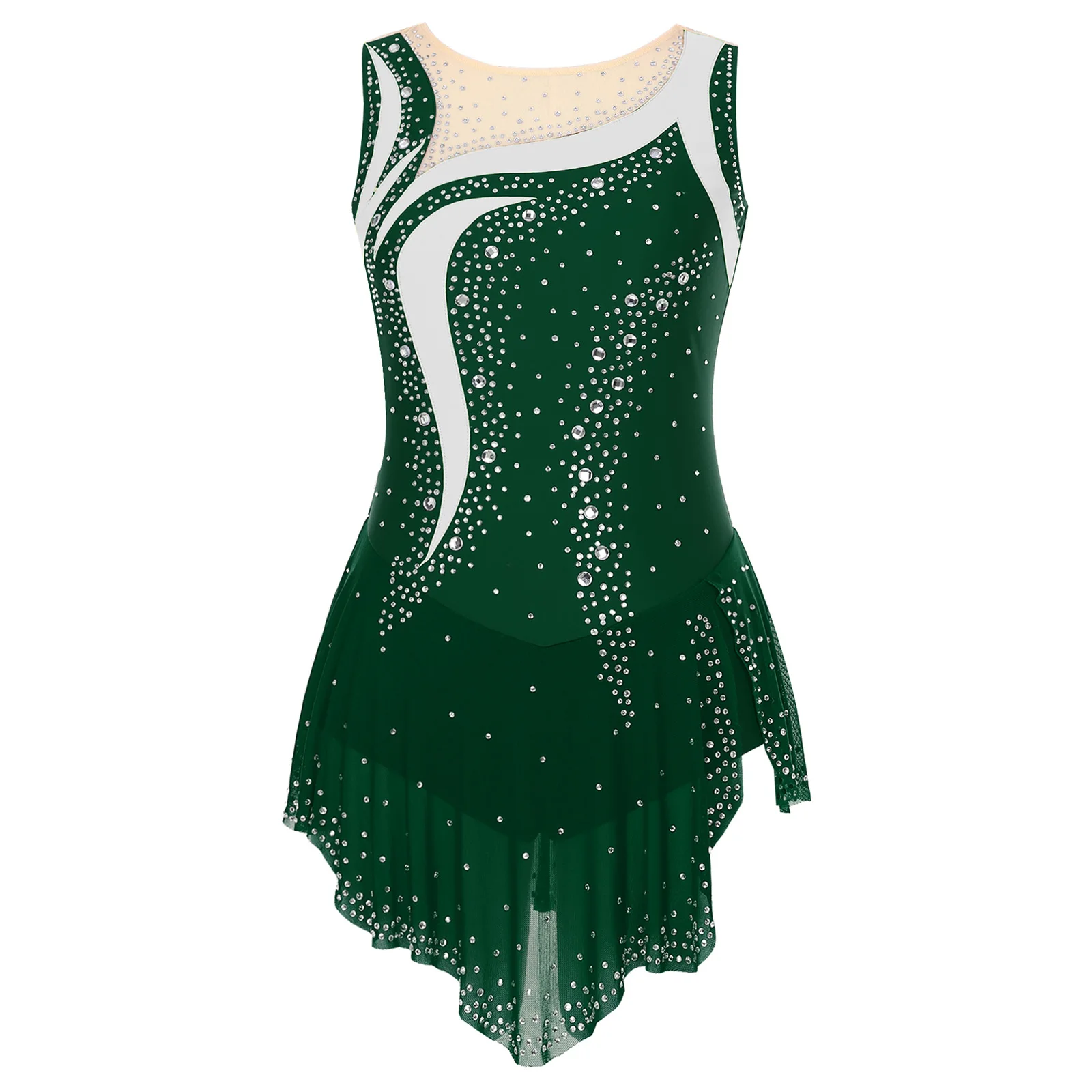 Trend4us Rhinestone Mesh Skating & Dance Leotard Dress