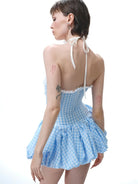 Trend4us Sweetheart Lace Trim Plaid Corset Bubble Mini Dress