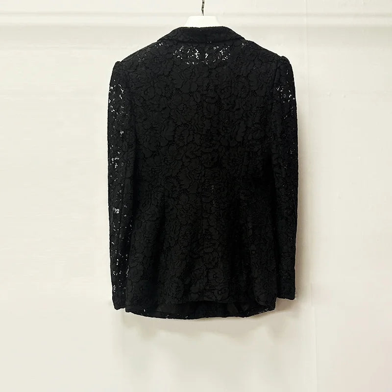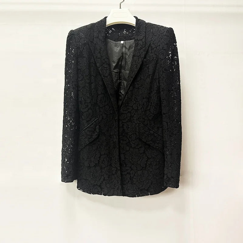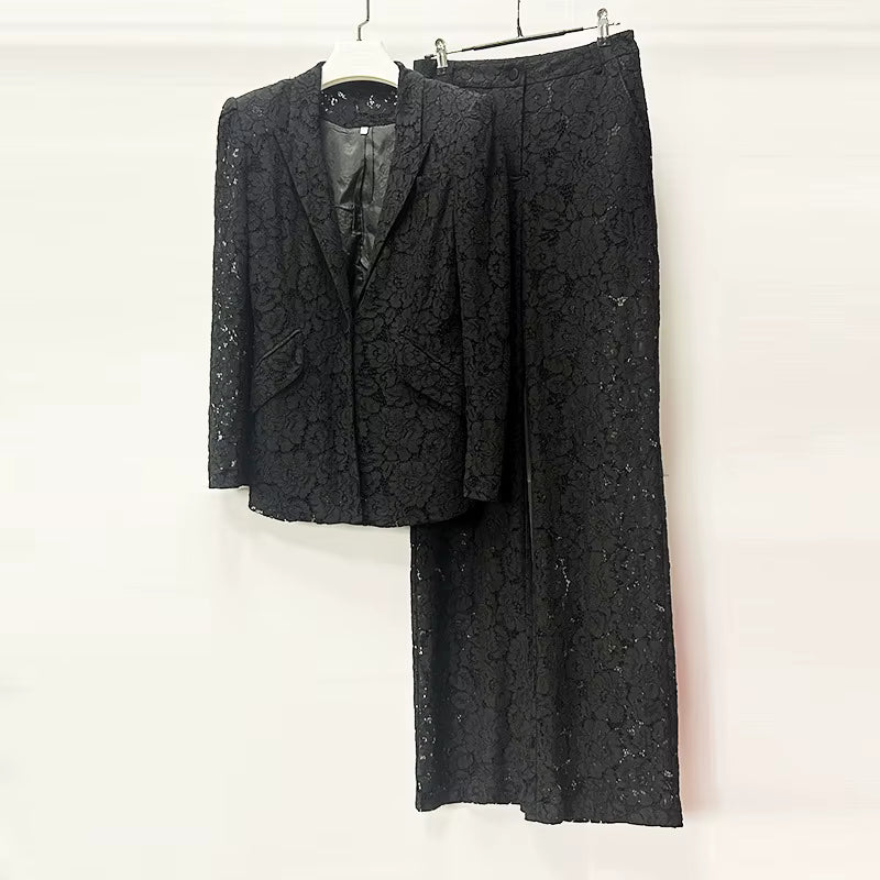 Trend4us Elegant Floral Lace Blazer & Wide-Leg Pants Set