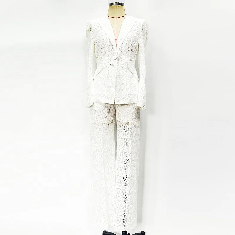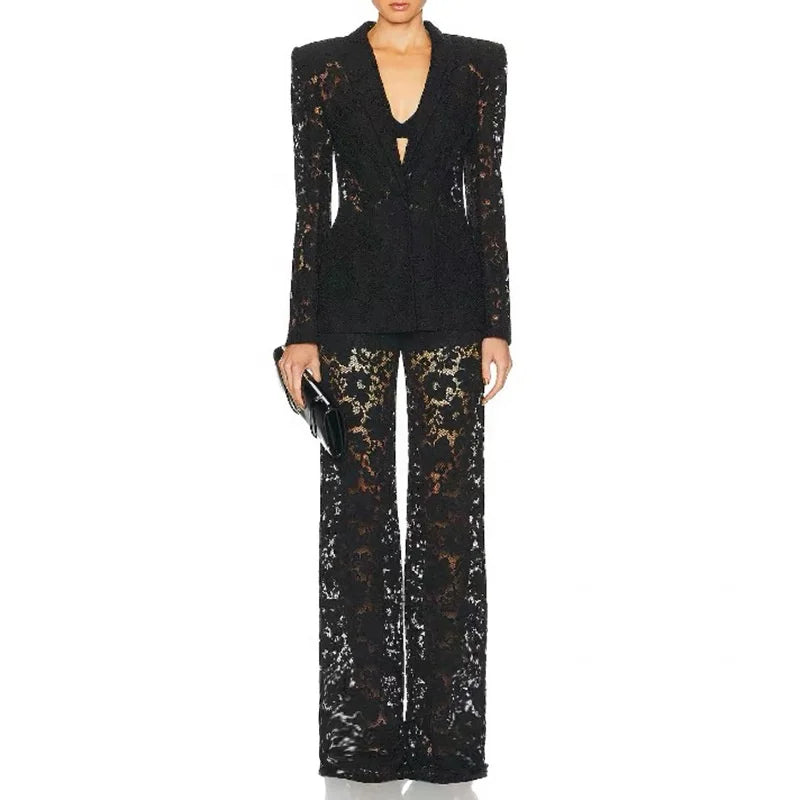 Trend4us Luxe Modern Lace Sheer Pantsuit Set