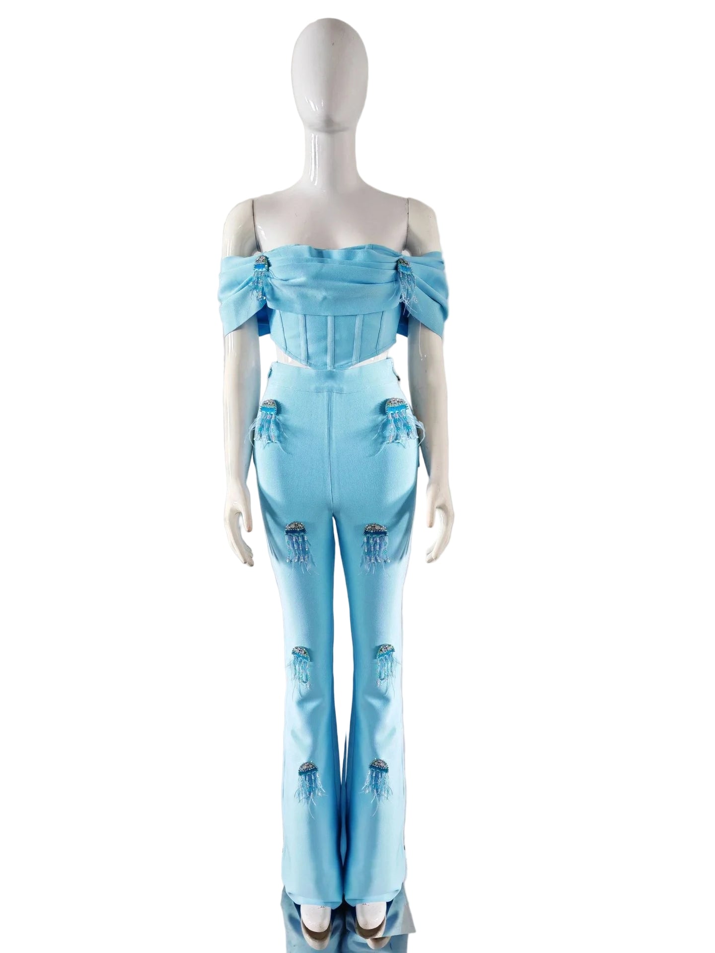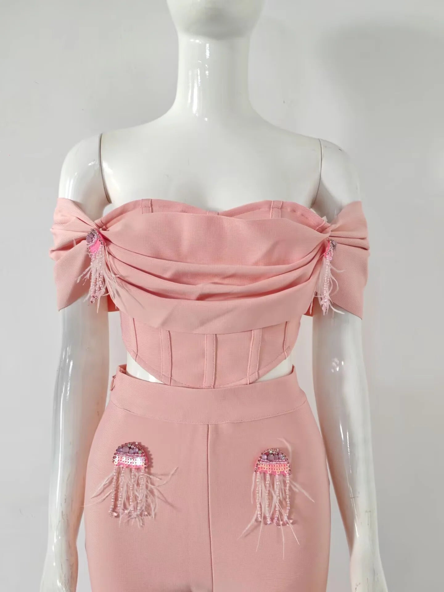 Trend4us Luxe Off-Shoulder Corset Pants Set