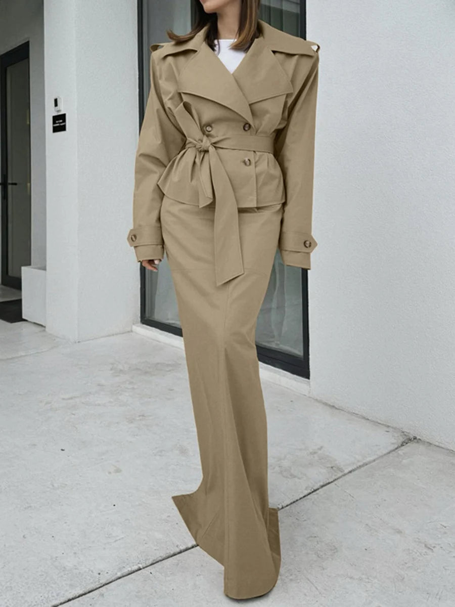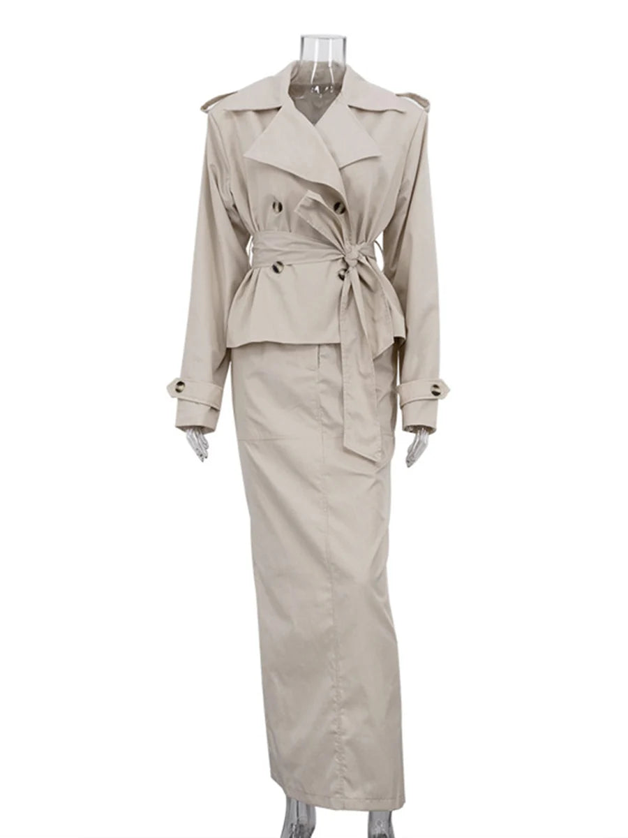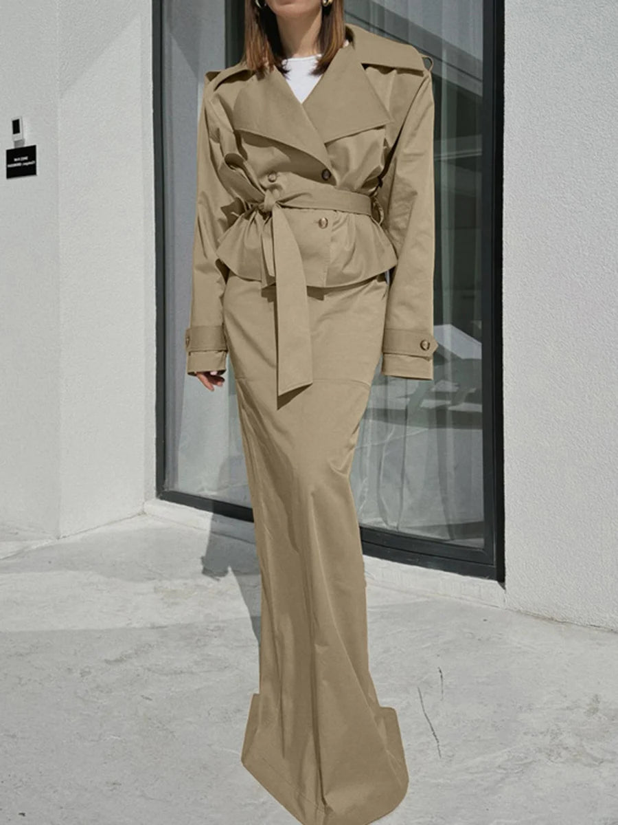 Trend4us Luxe Trench Belted Maxi Skirt Set