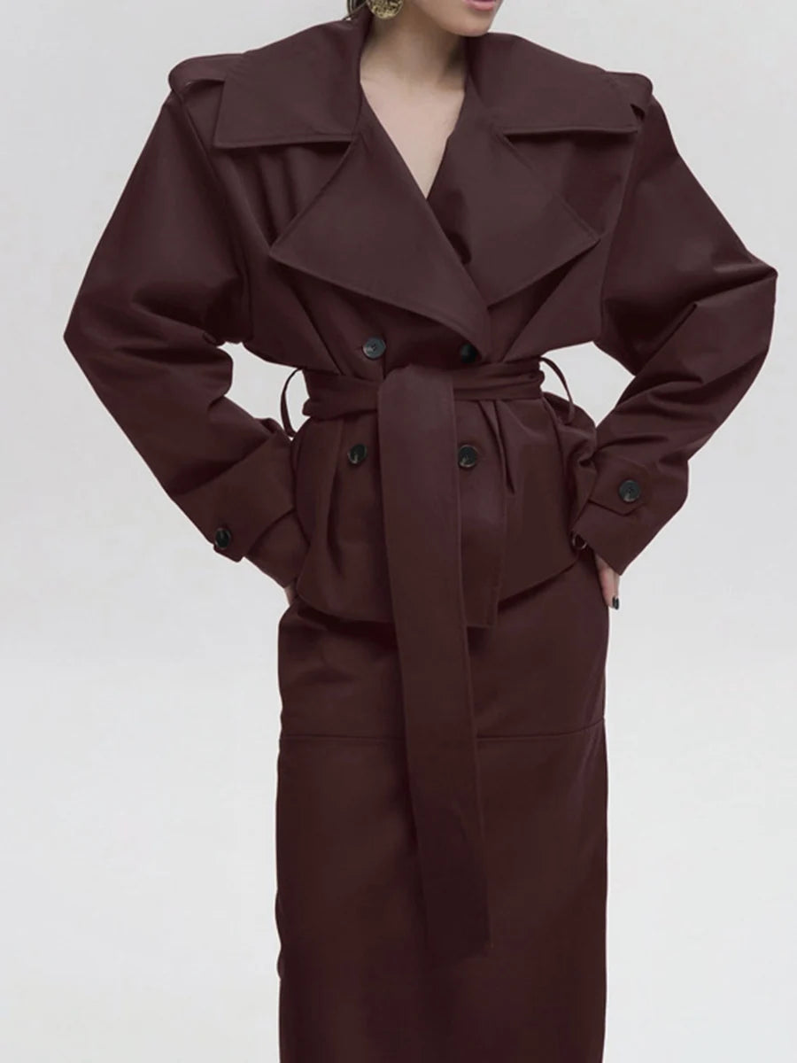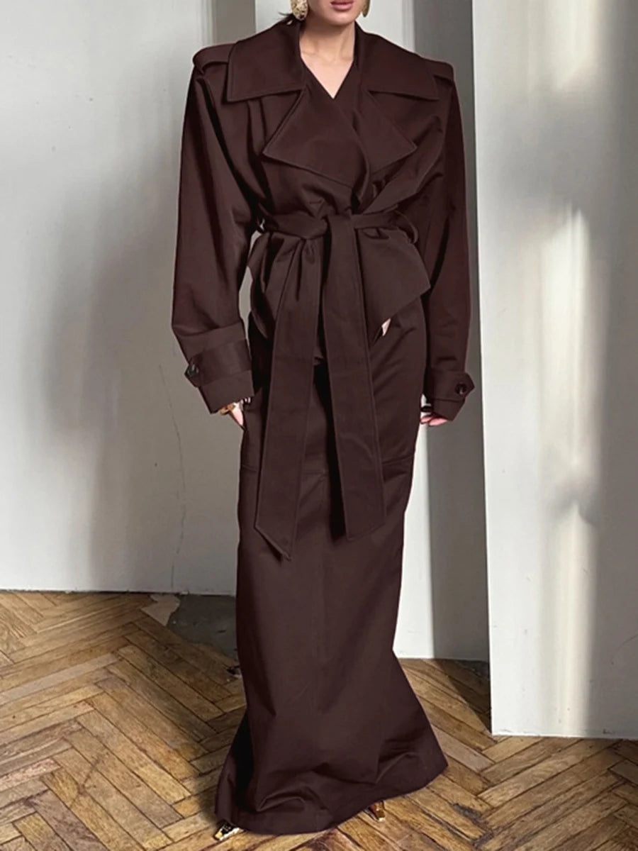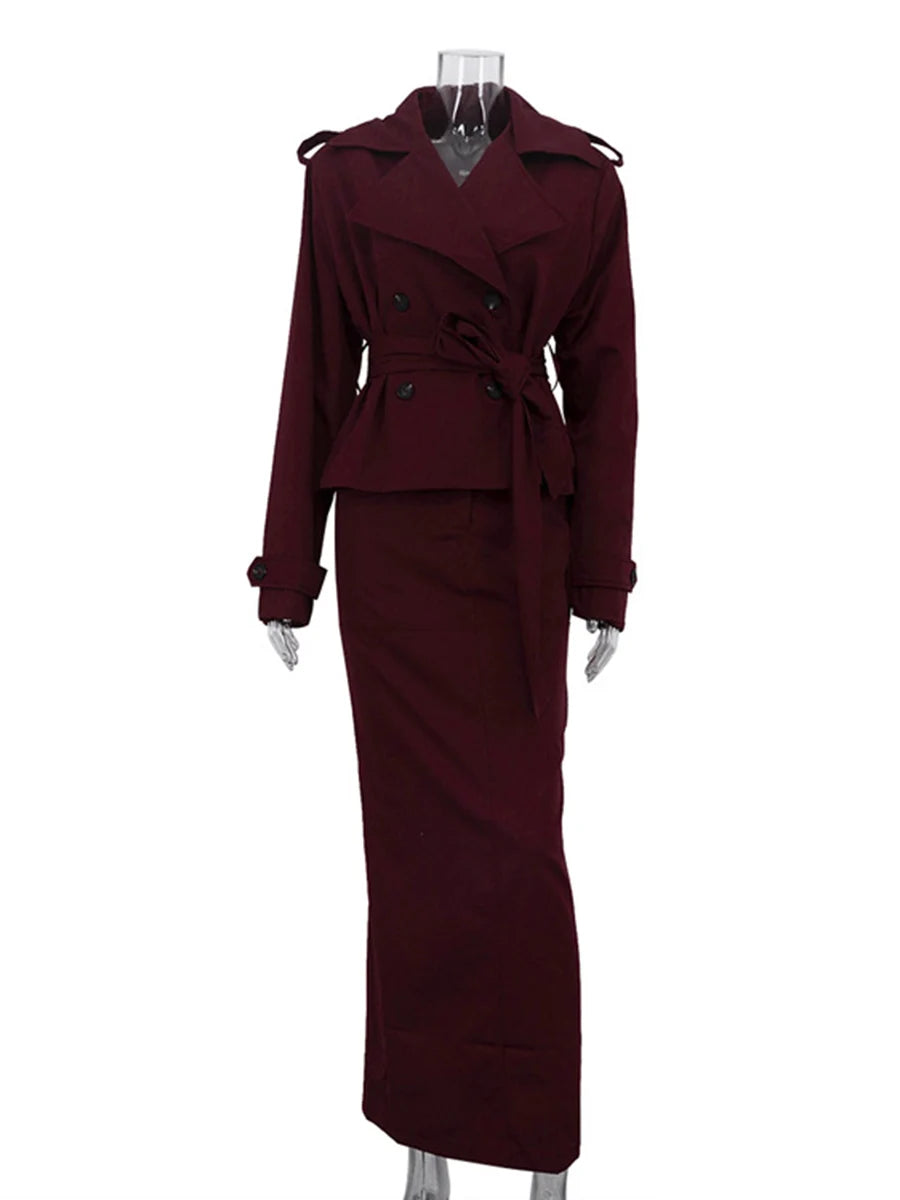 Trend4us Luxe Trench Belted Maxi Skirt Set