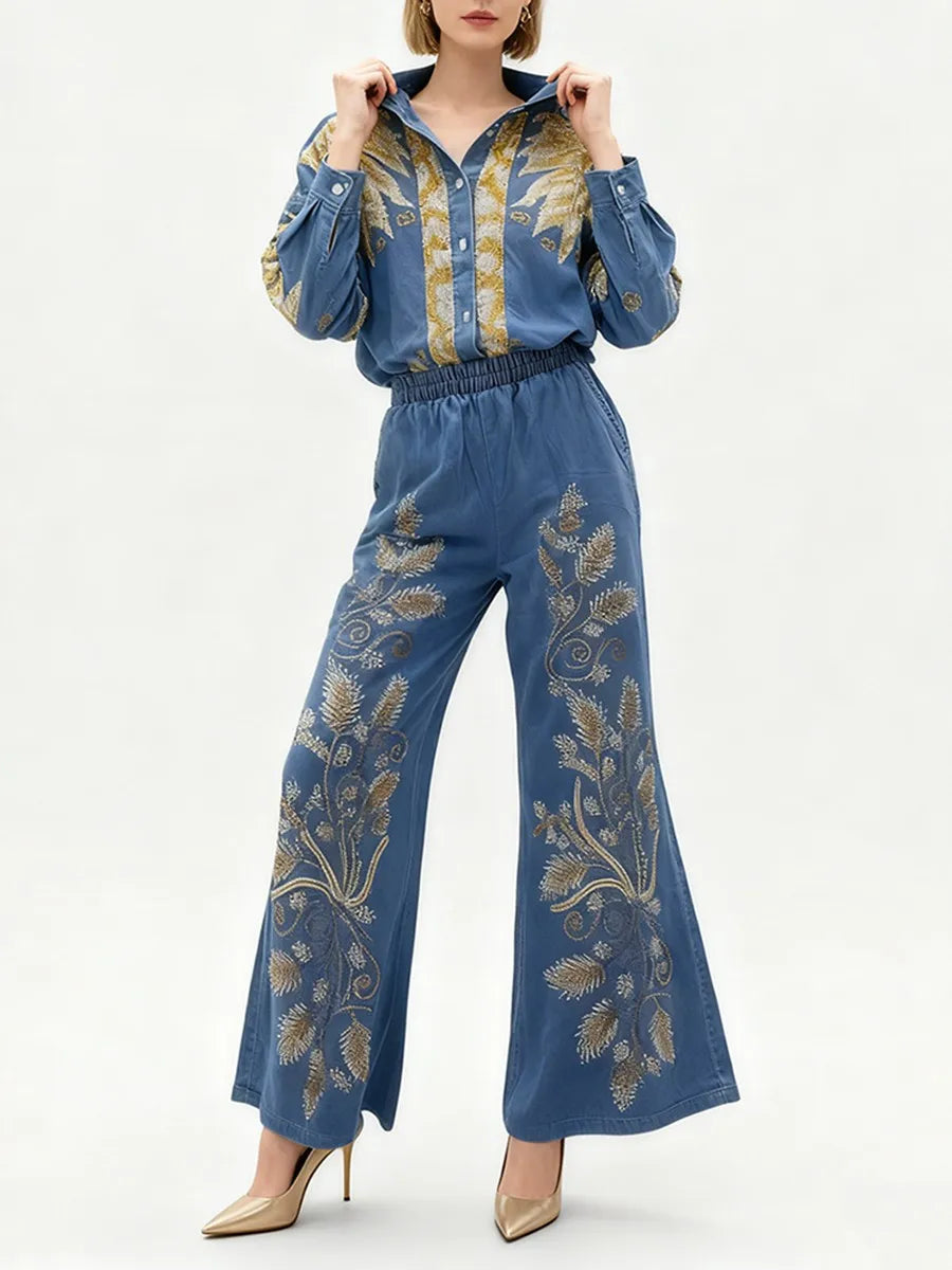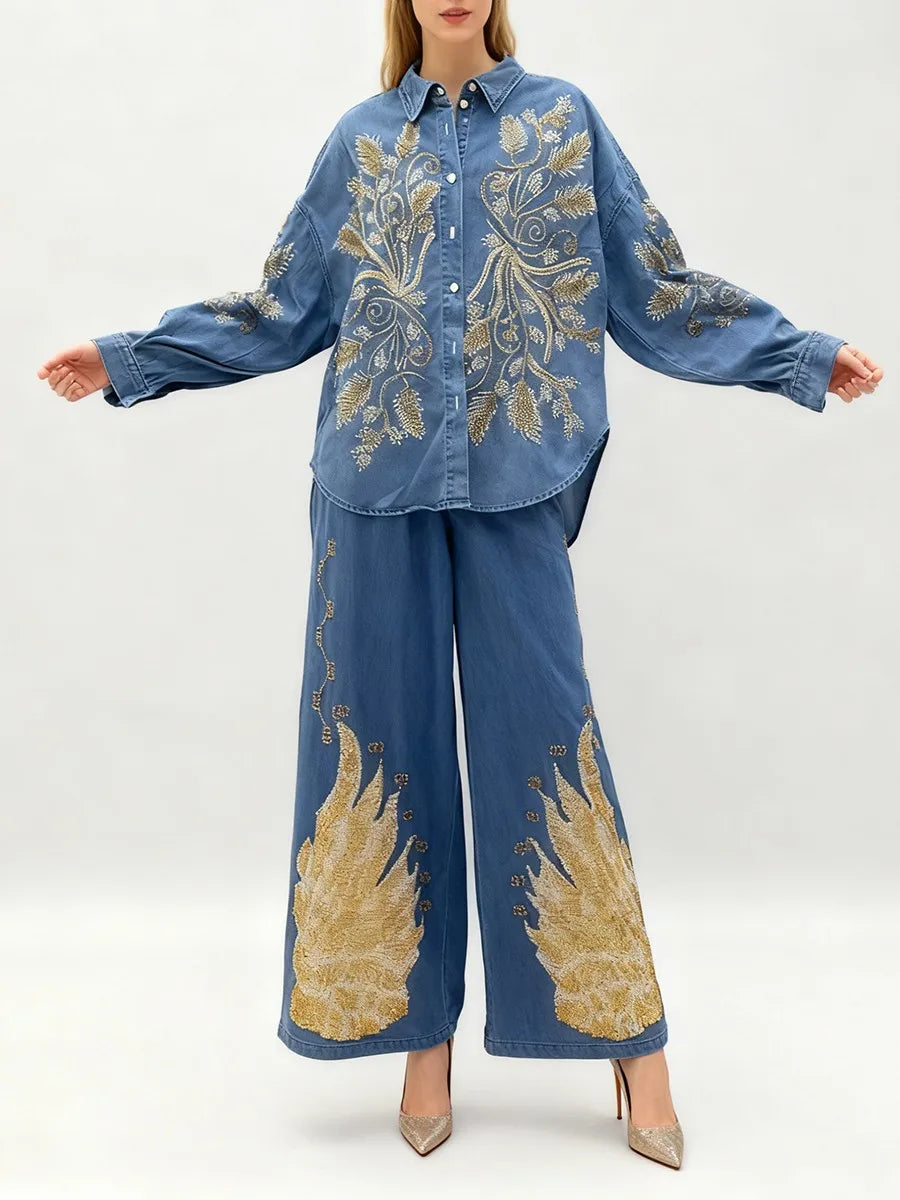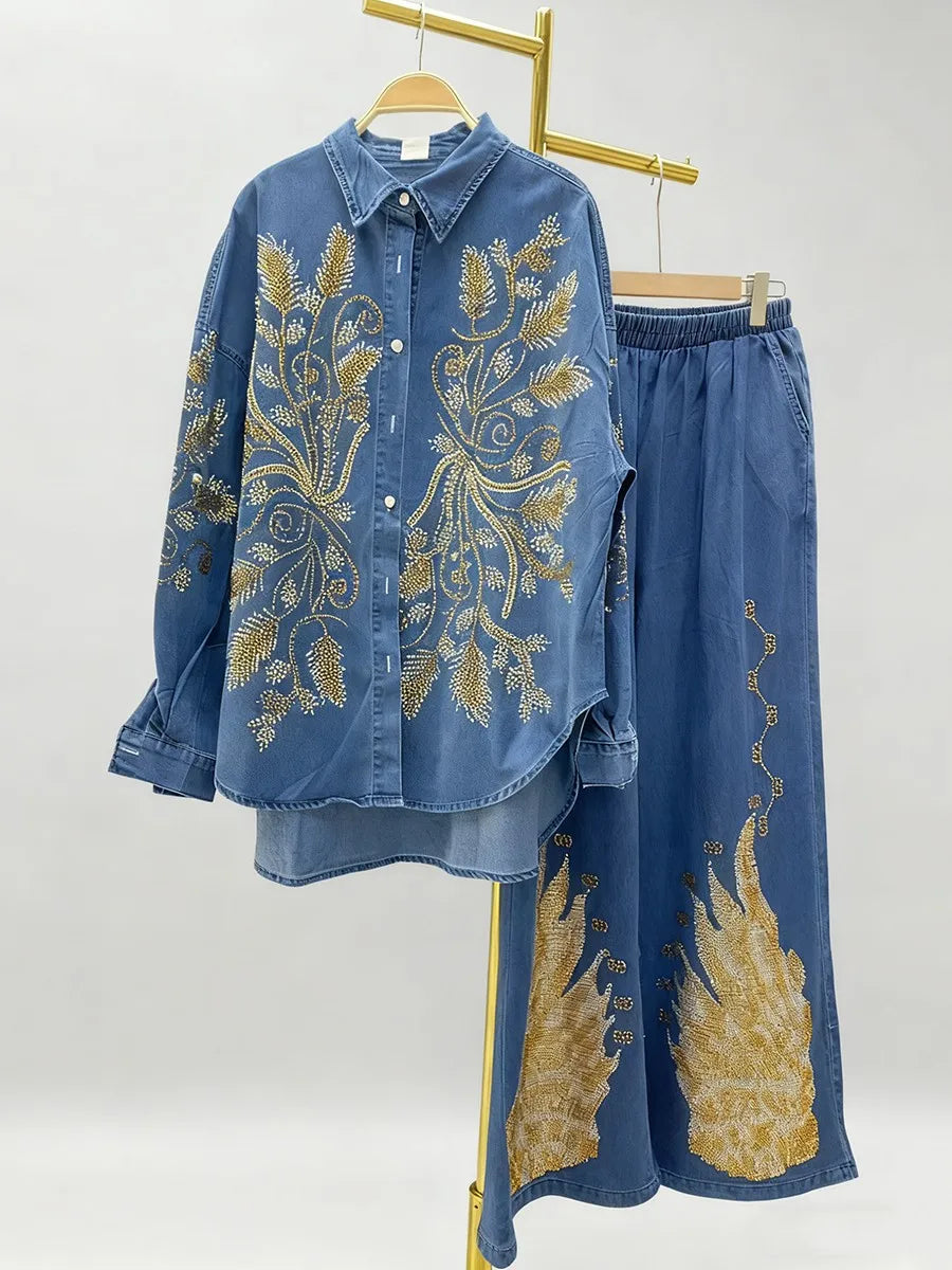 Trend4us Embroidered Cowboy Denim Two-Piece Set