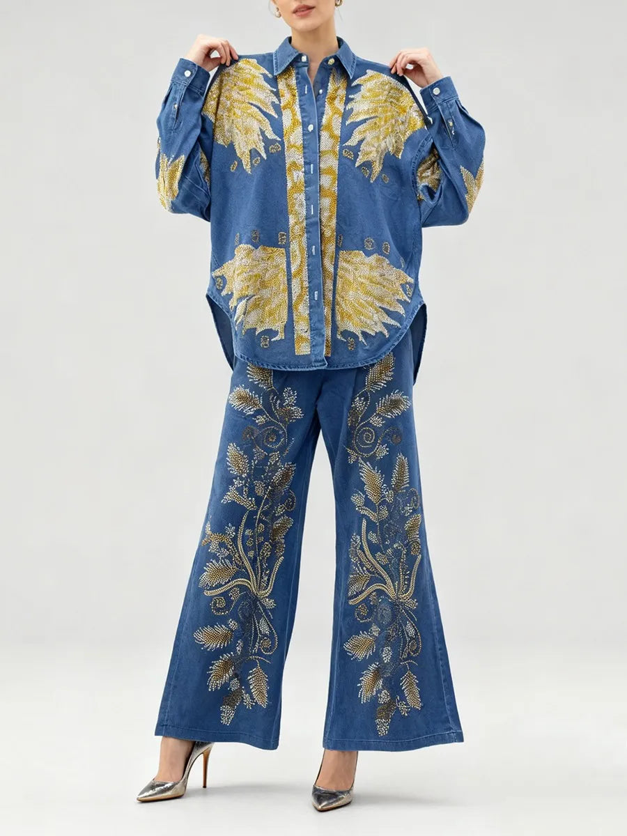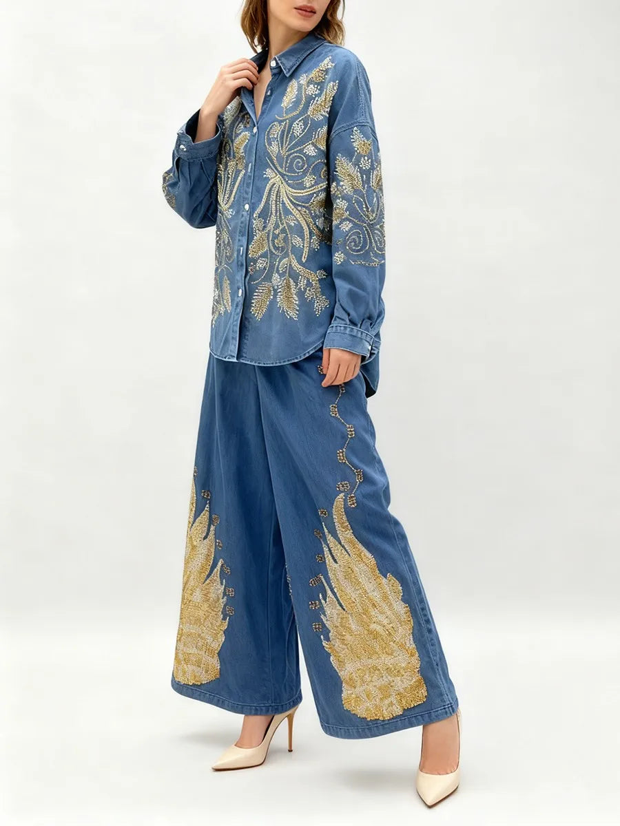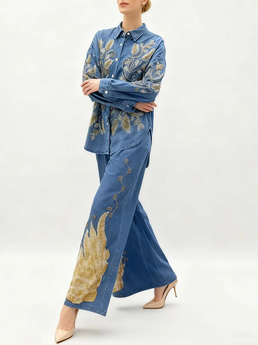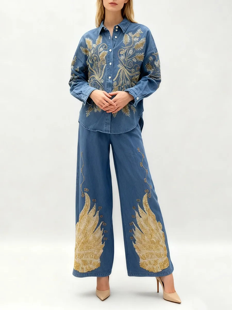 Trend4us Embroidered Cowboy Denim Two-Piece Set