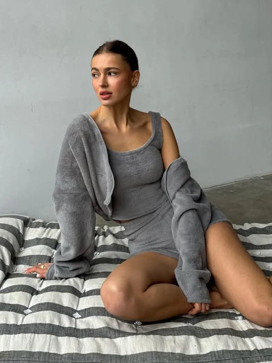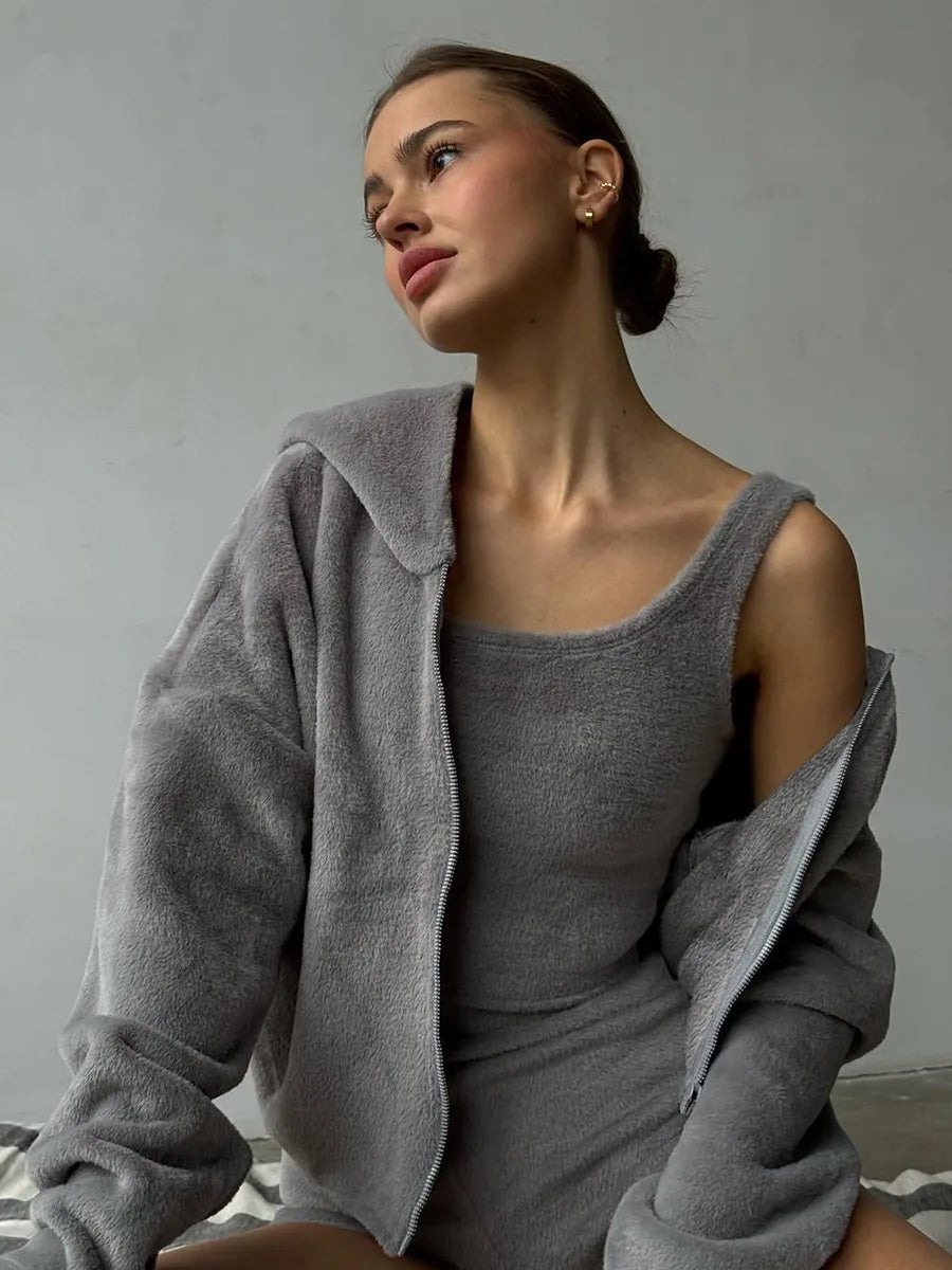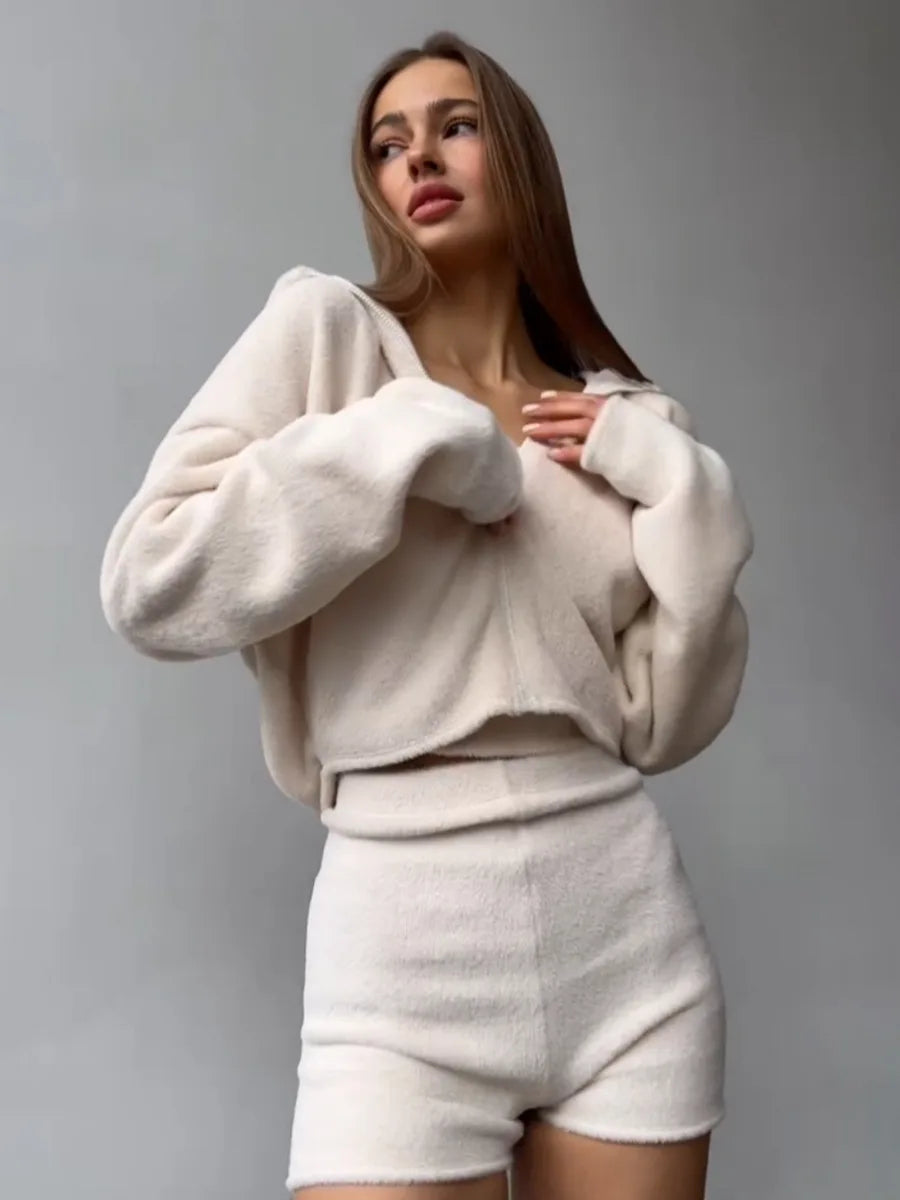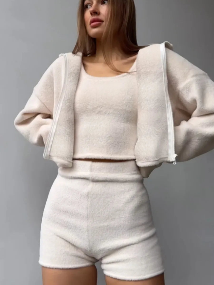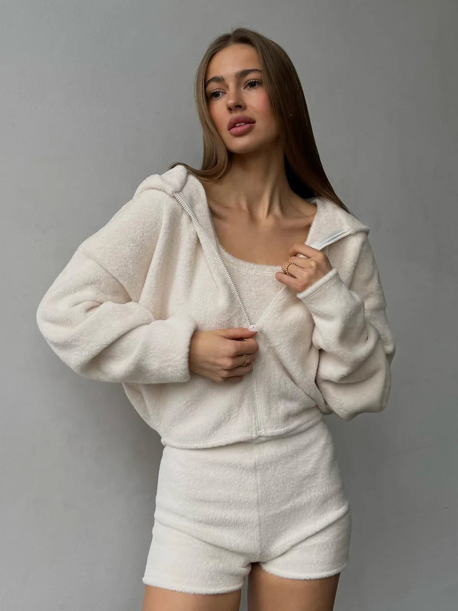 Trend4us Cozy Plush Lounge Zip Hoodie & Shorts Set