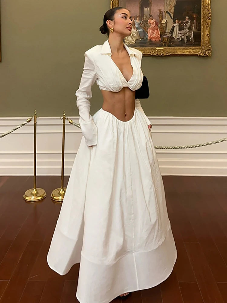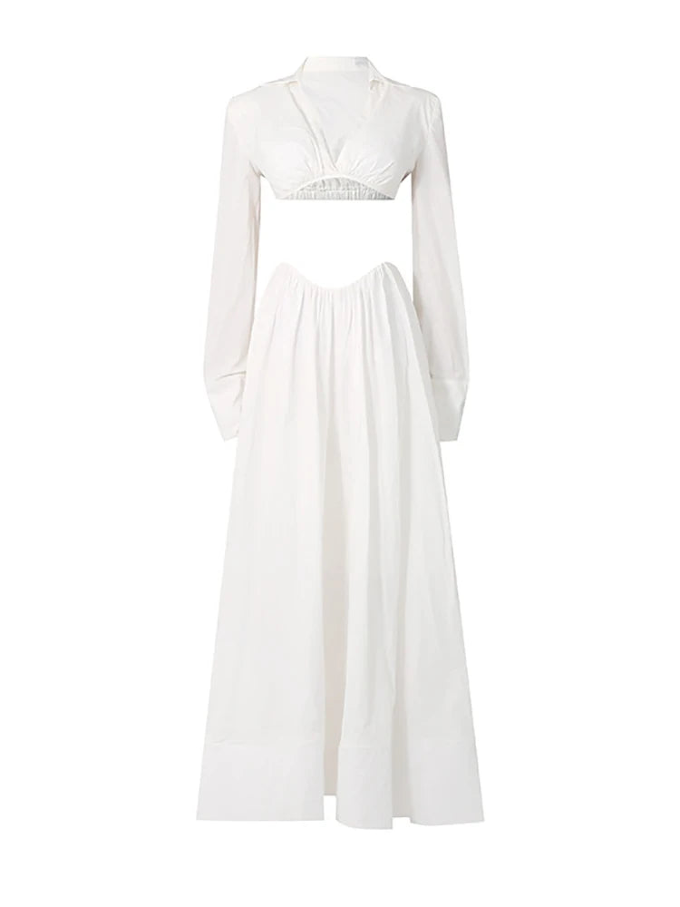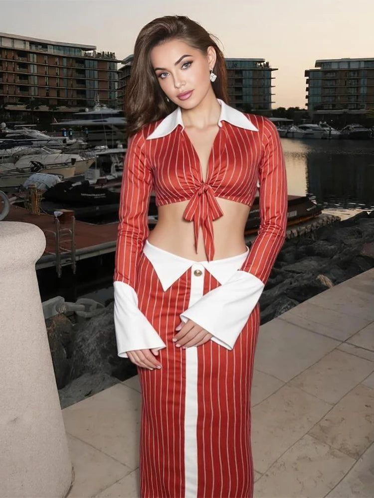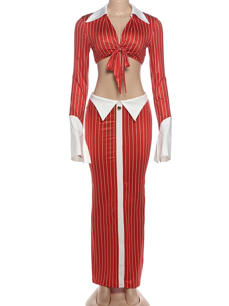 Trend4us Pinstripe Contrast Collar Crop Top & Maxi Skirt Set