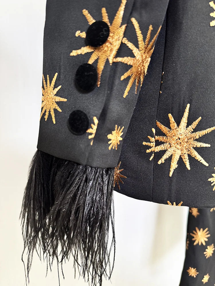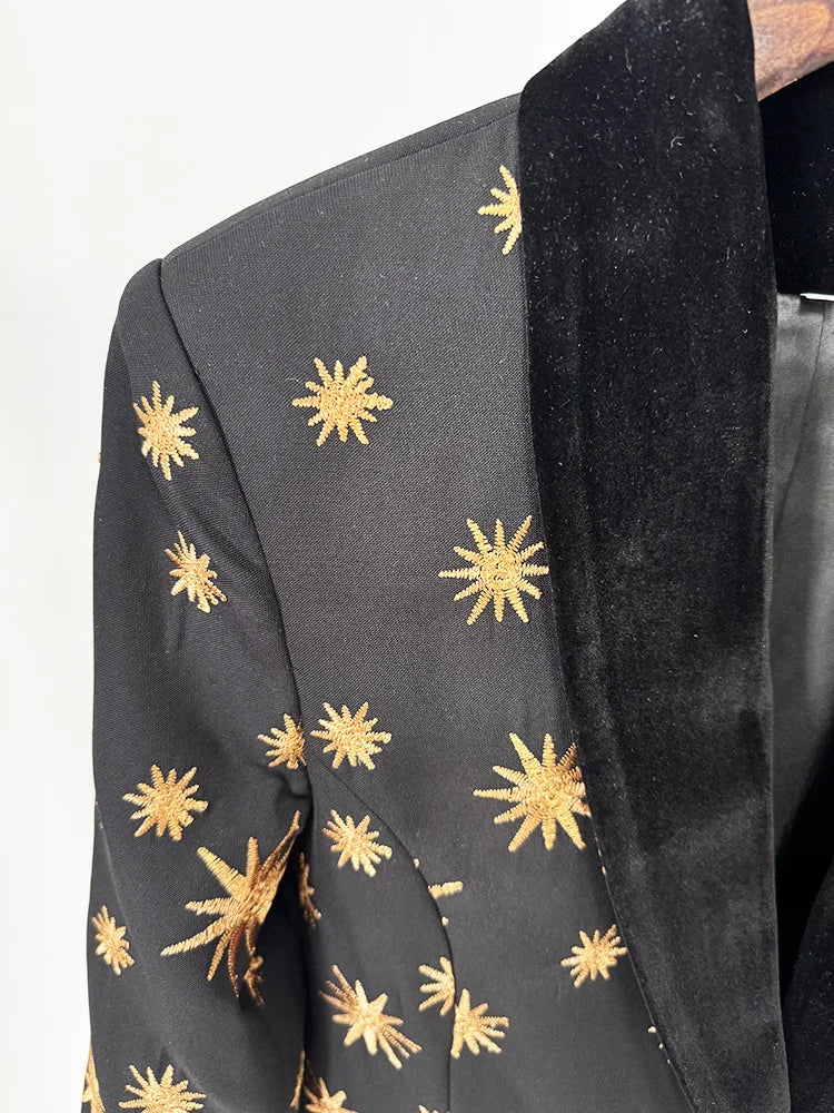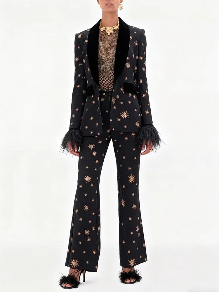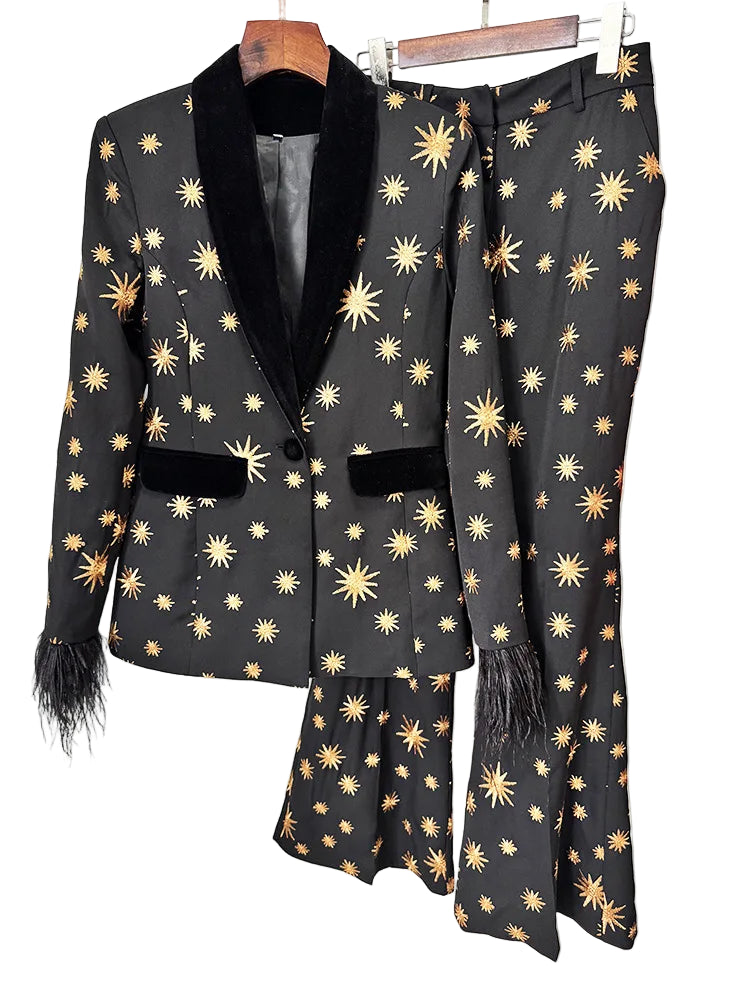 Trend4us Embroidered Velvet Blazer & Flared Pants Set