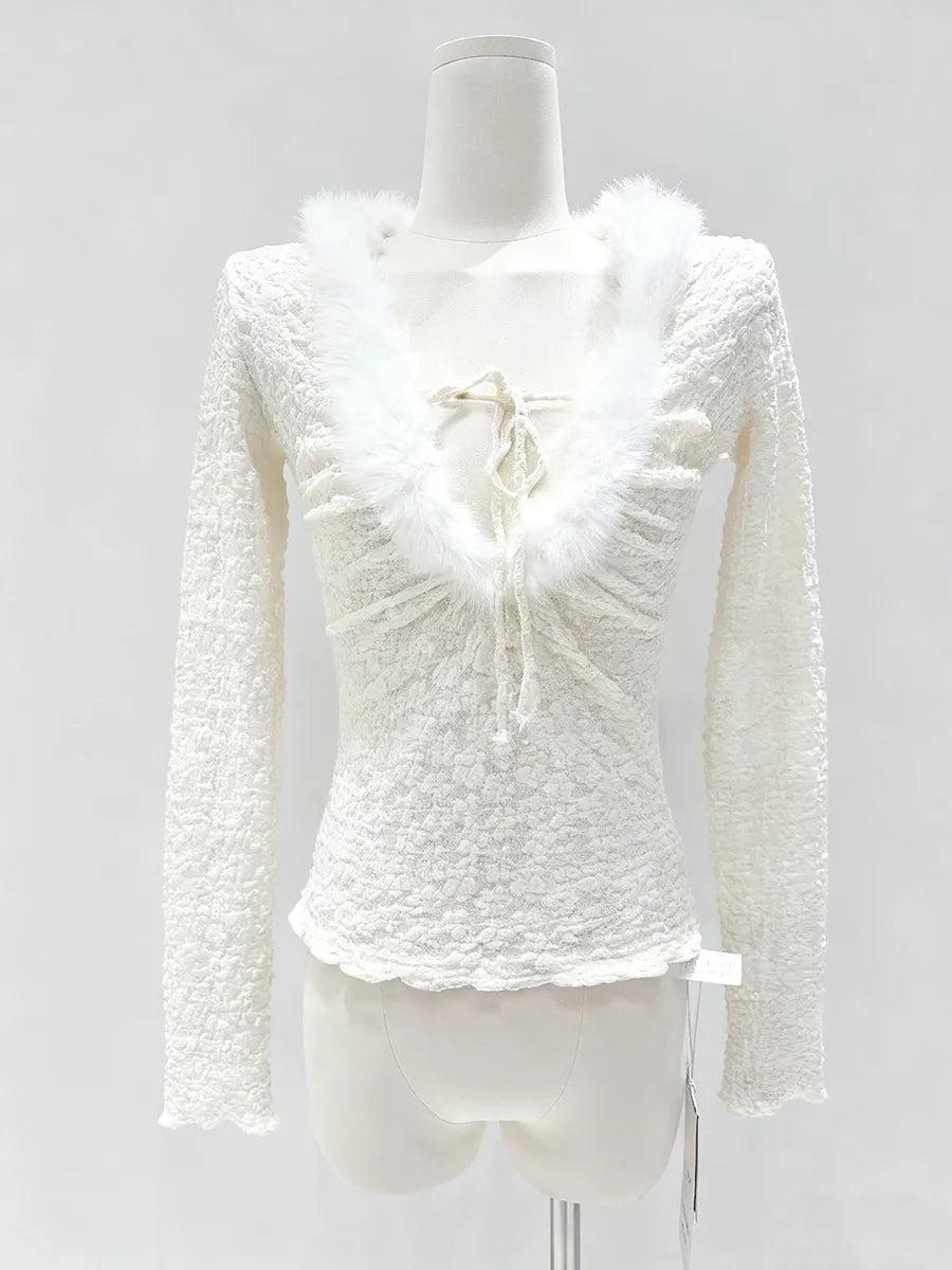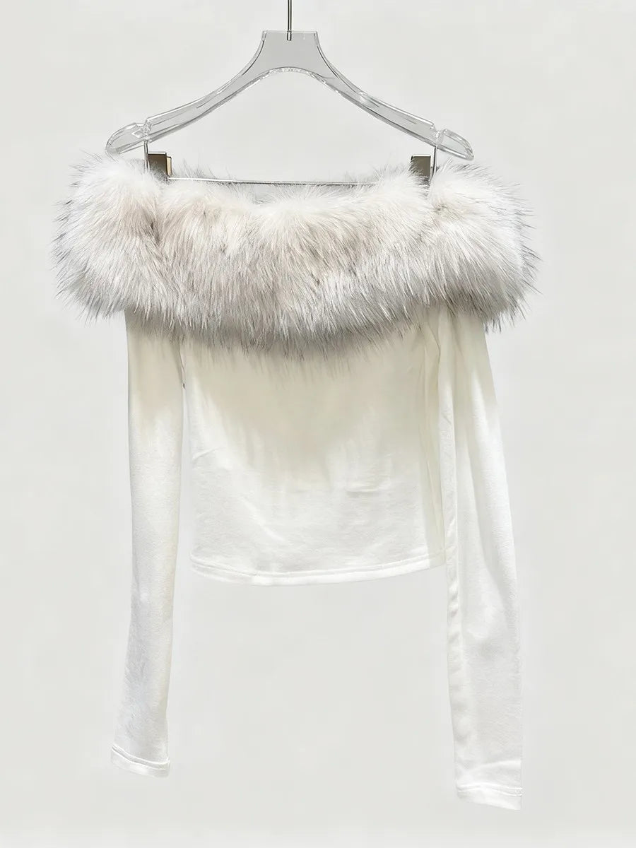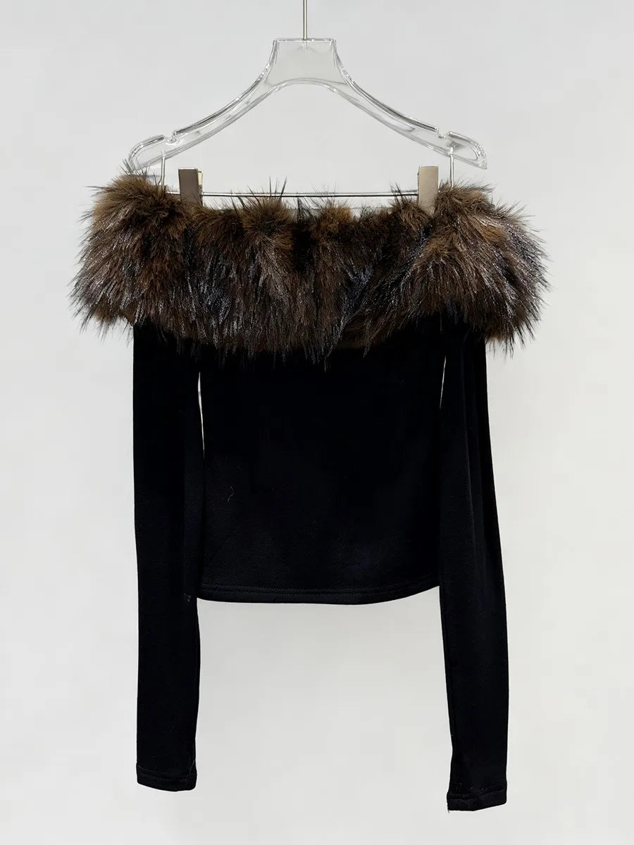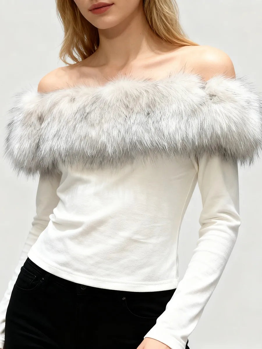 Trend4us Luxe Off-Shoulder Faux Fur Trimmed Top