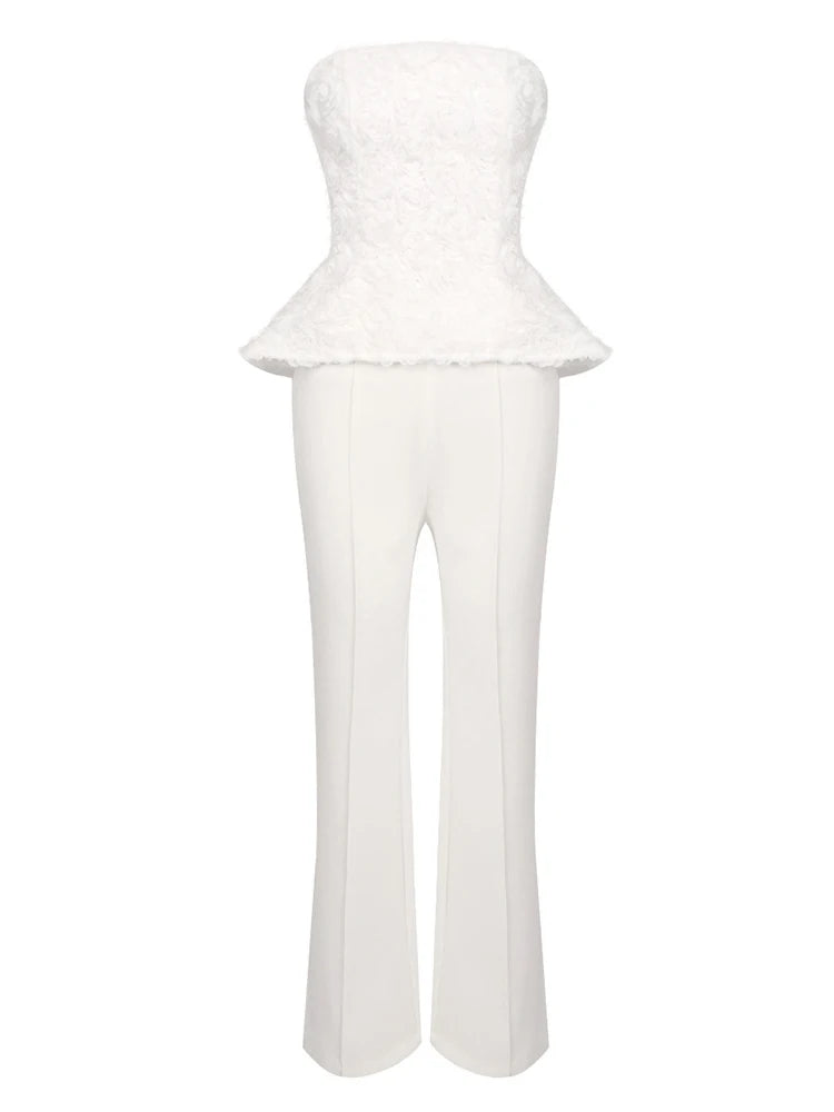Trend4us Luxe 3D Floral Peplum Top & Flared Pants Set