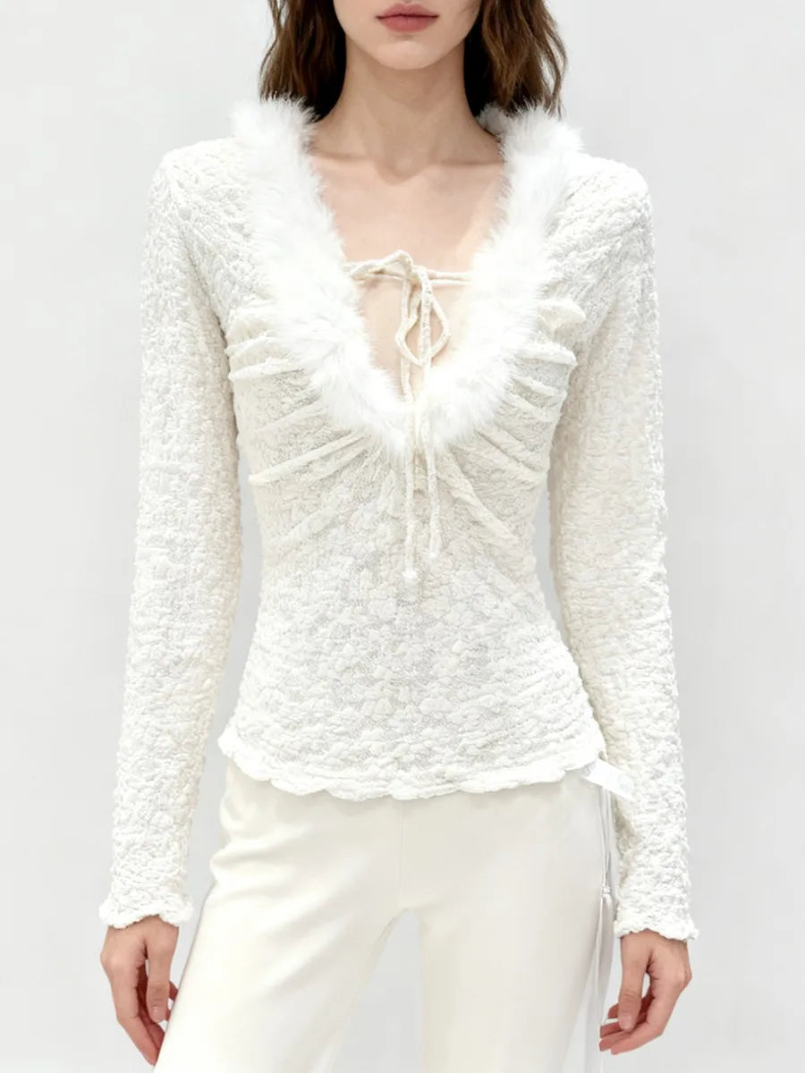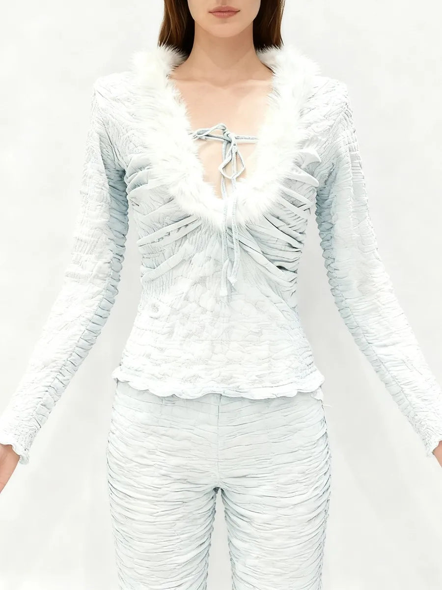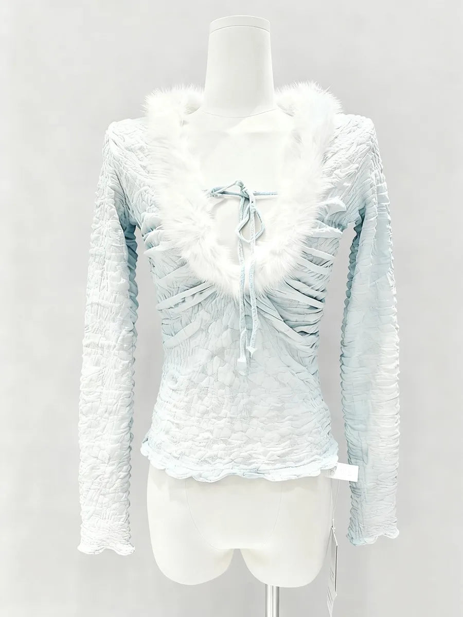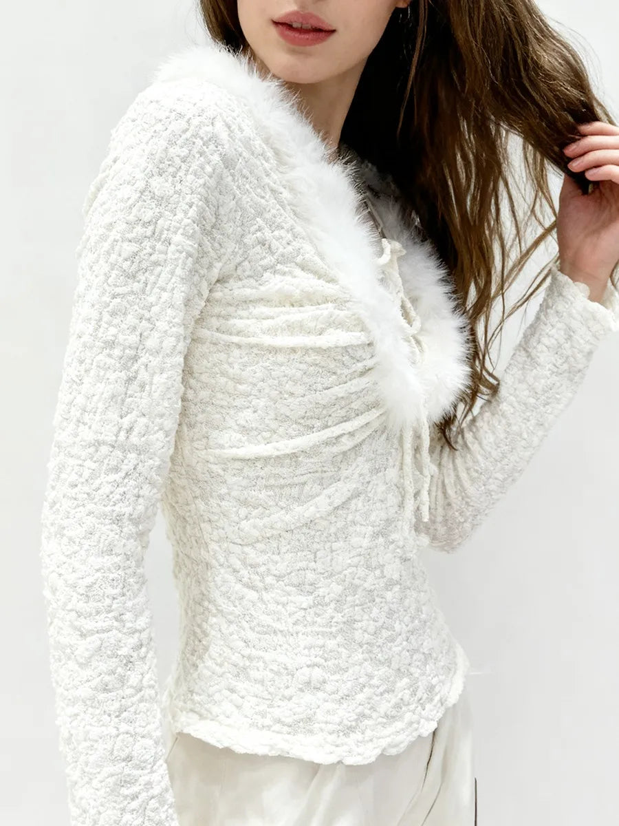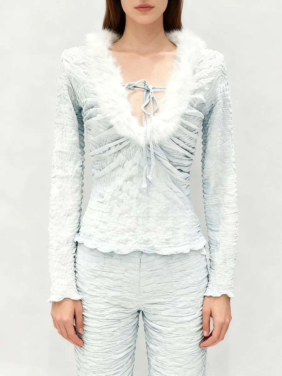 Trend4us Luxe Fur-Trim Ruched Velvet Top