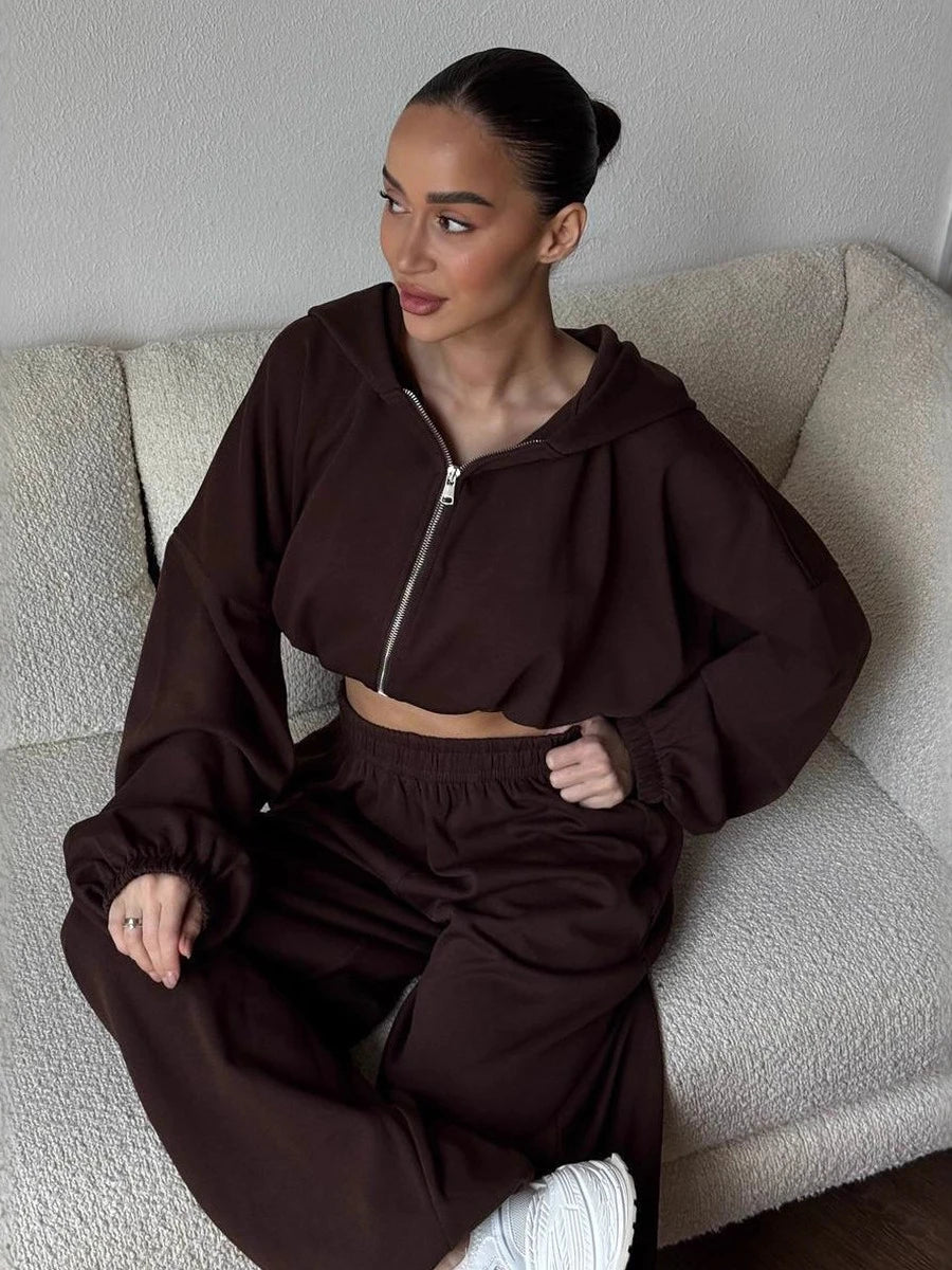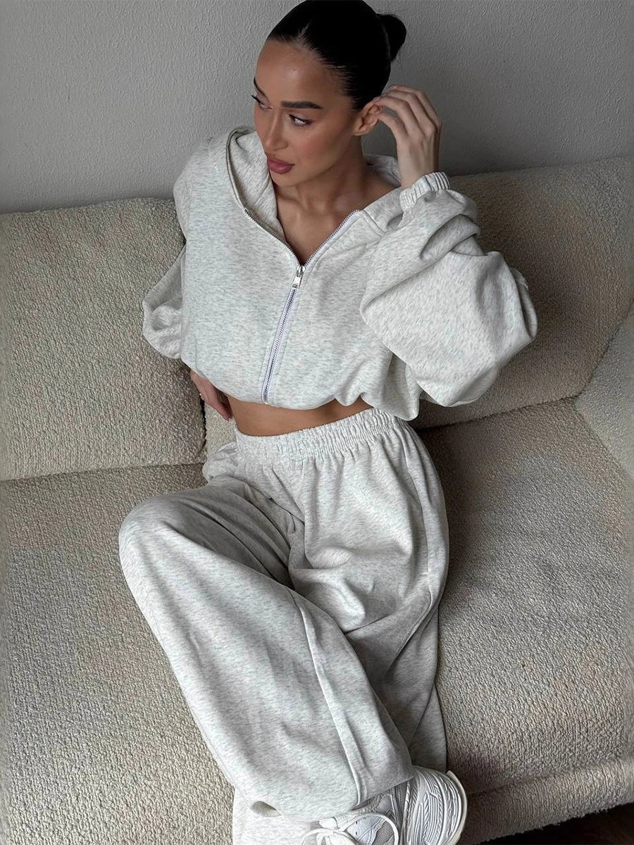 Trend4us Modern Lounge Zip Hoodie Two-Piece Set