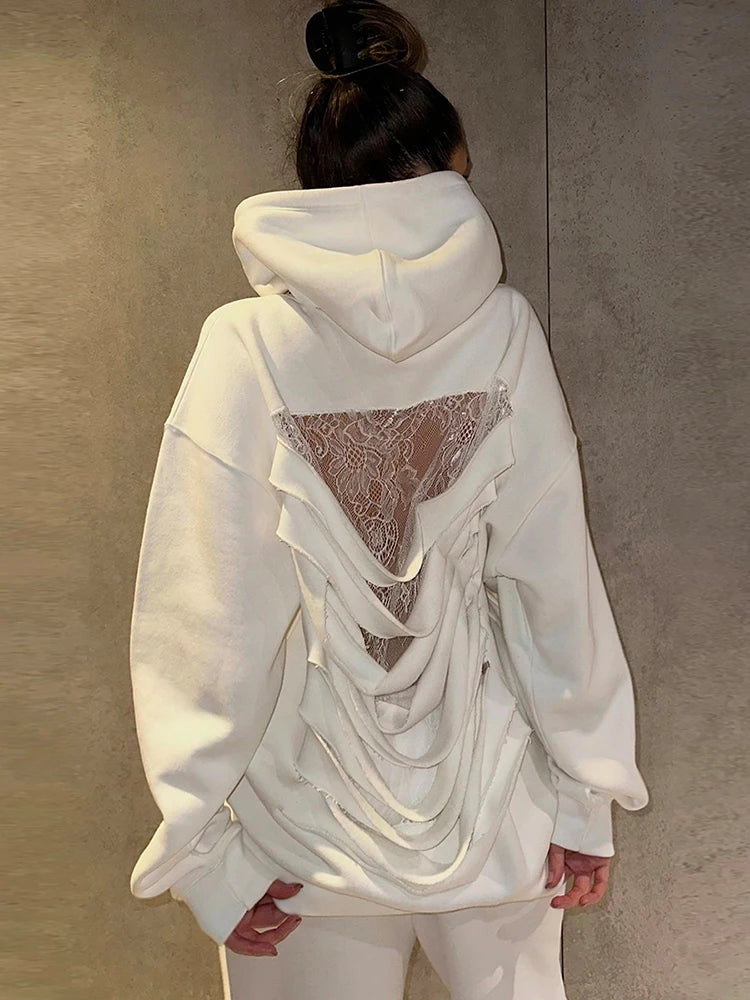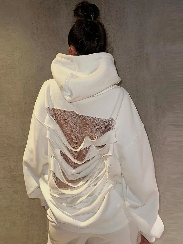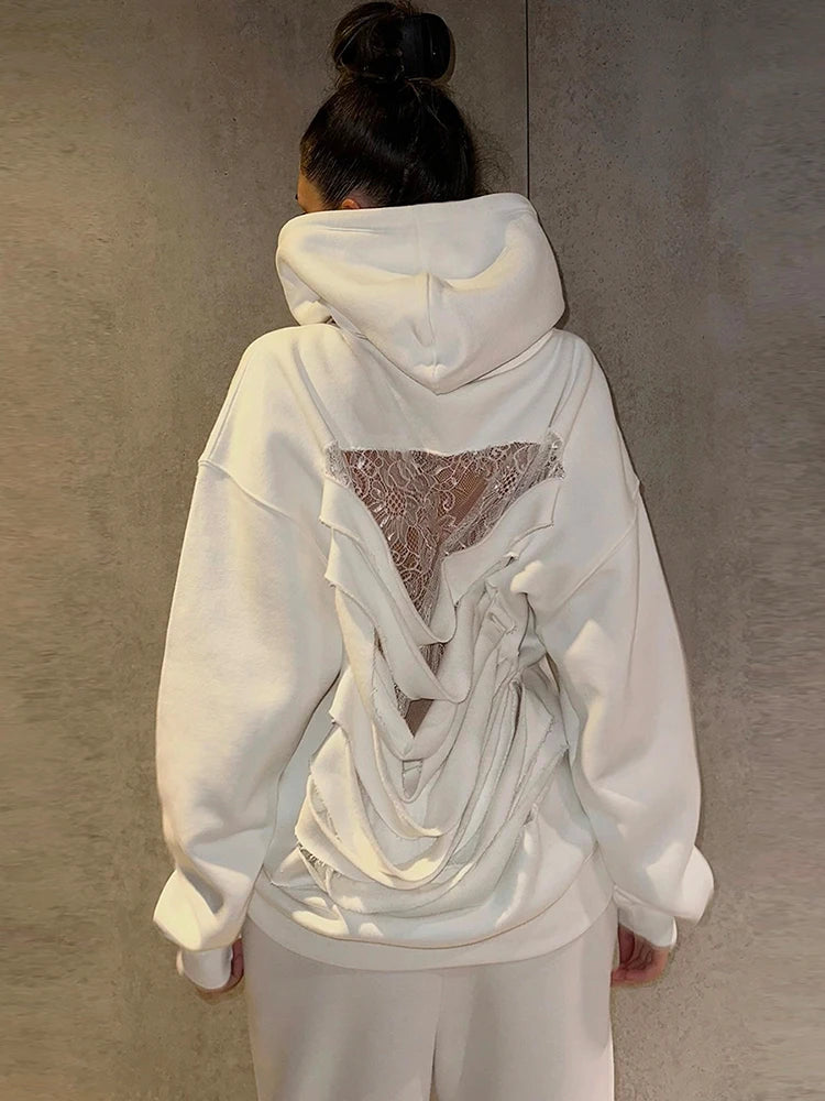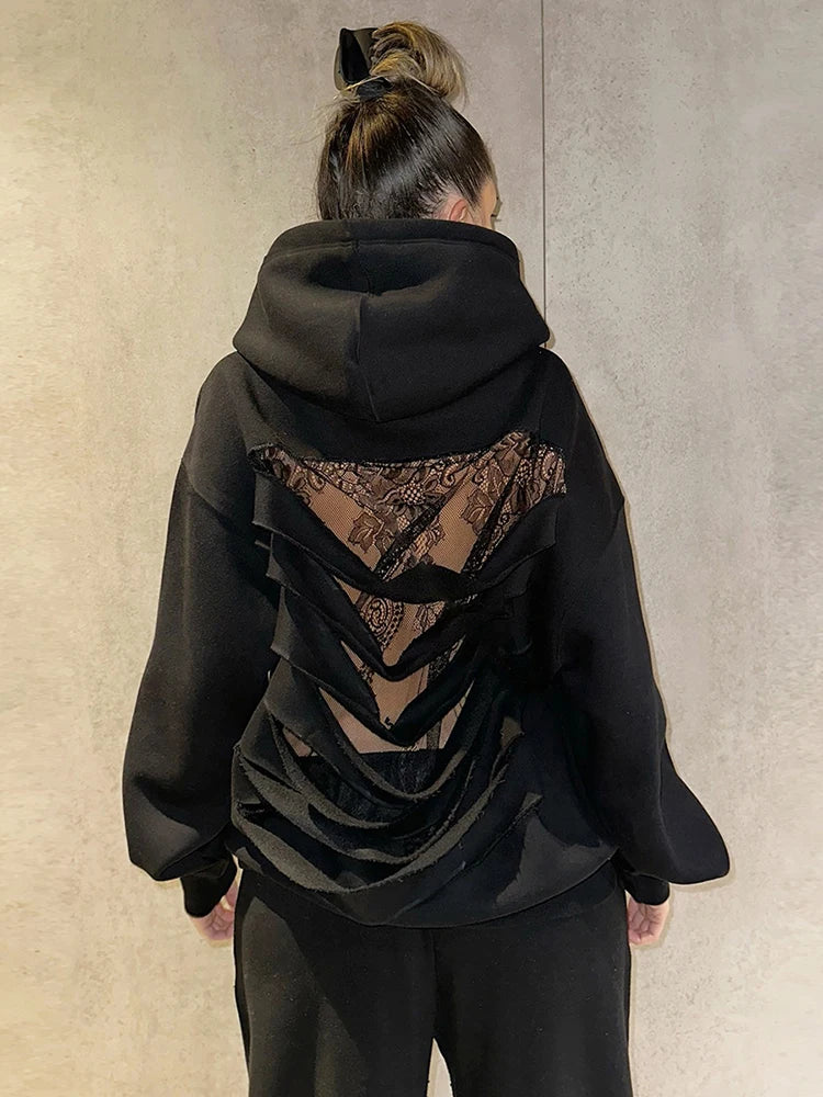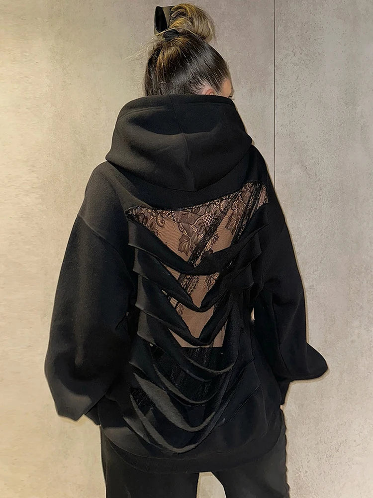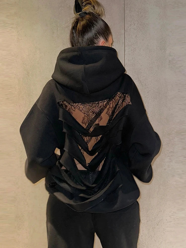Trend4us Luxe Lace-Back Cutout Hoodie