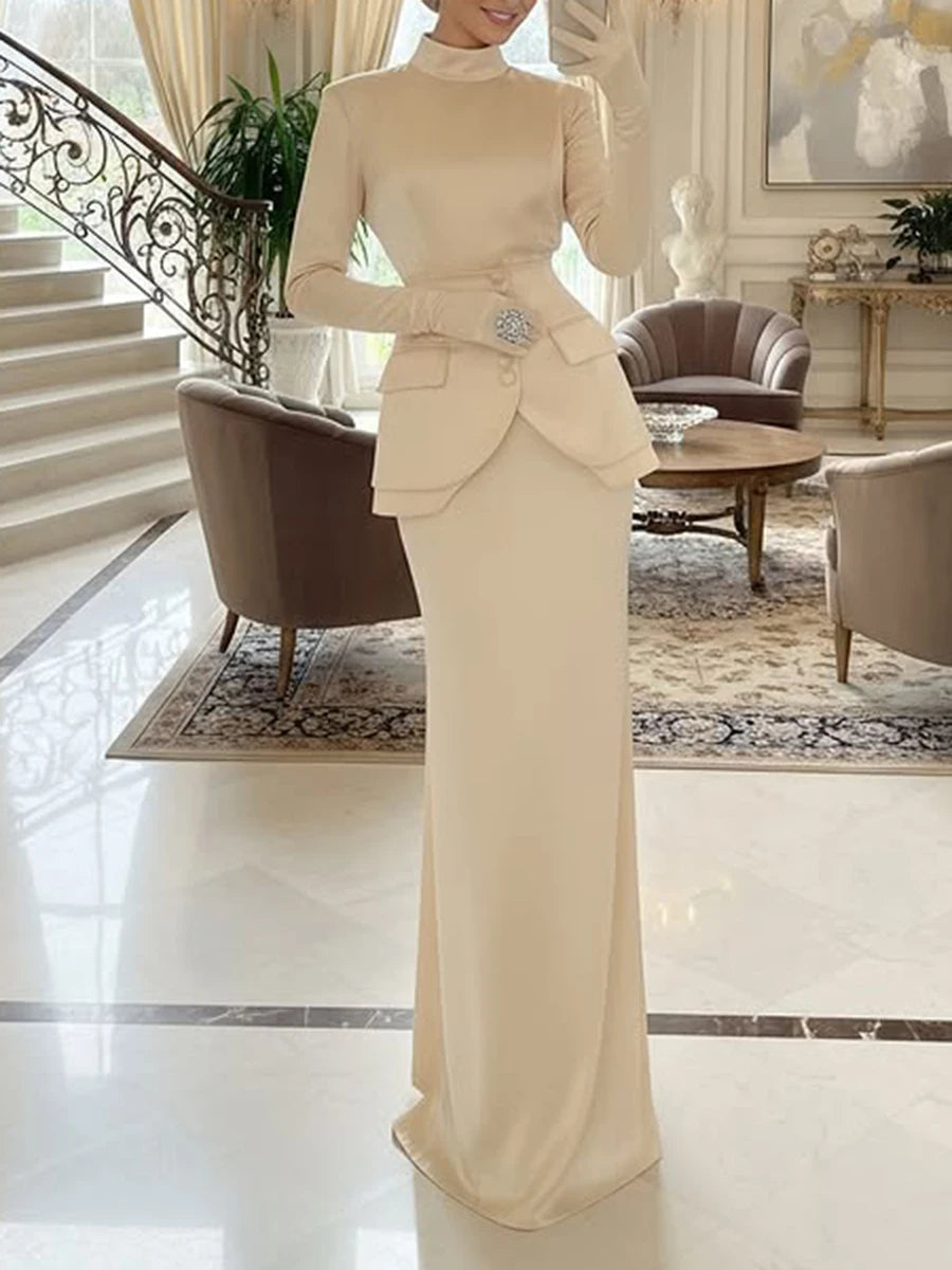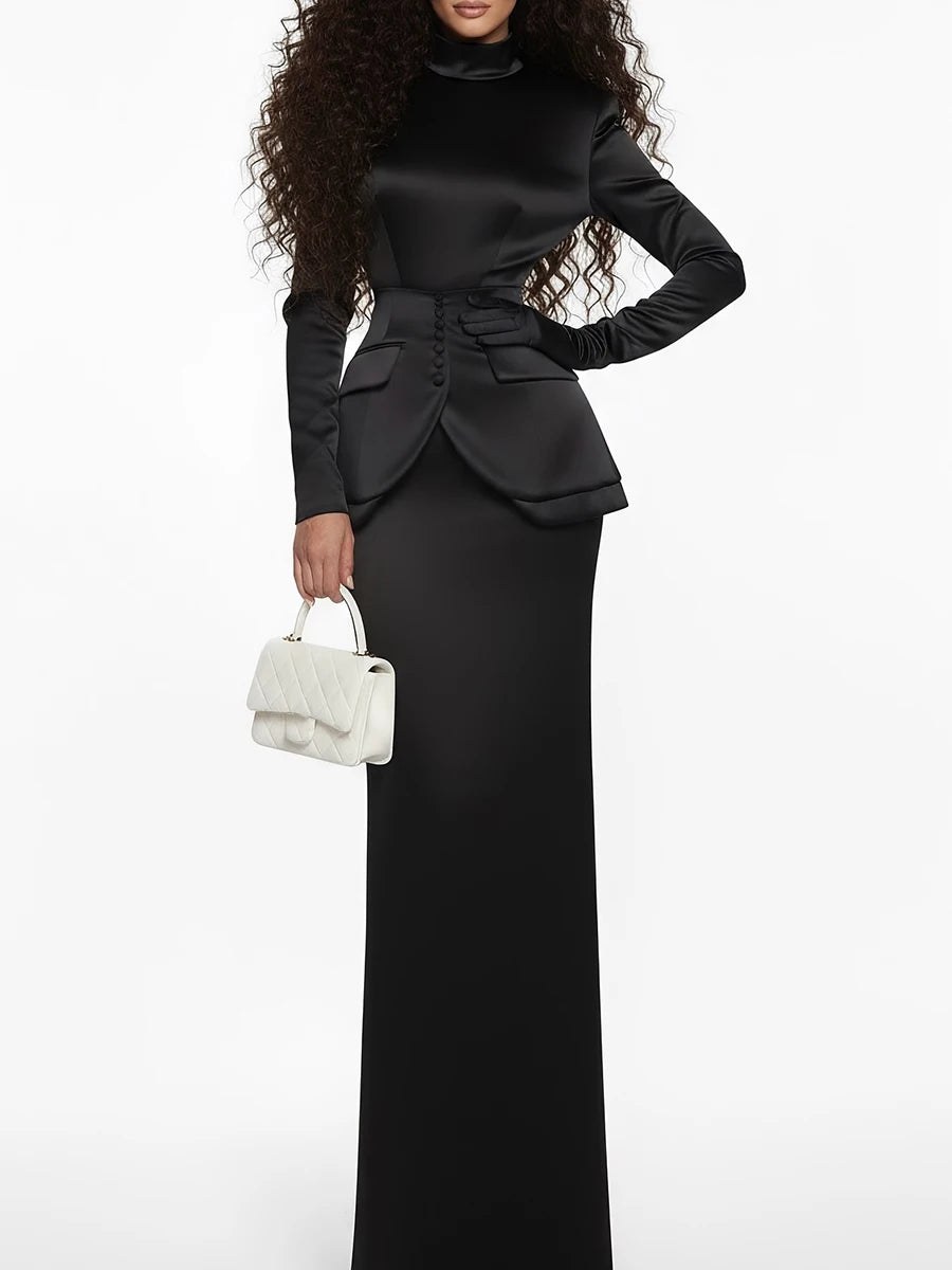 Trend4us Luxe Satin Formal Peplum Two-Piece Set