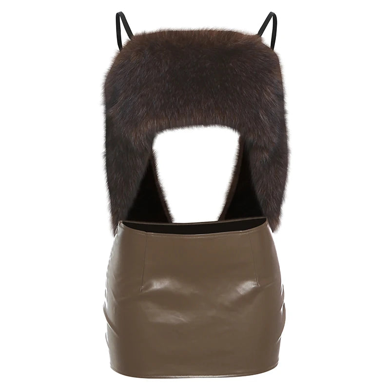 Trend4us Irregular Fur Top and Leather Mini Skirt Set