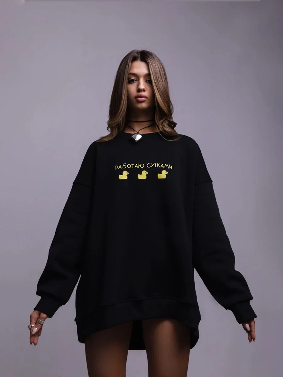 Turn your daily grind into a style statement with the Trend4us All-Day Ducks Streetwear Oversized Sweatshirt. Featuring a playful trio of duck icons and bold text, this design brings humor and attitude to an ultra-cozy silhouette.