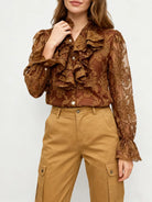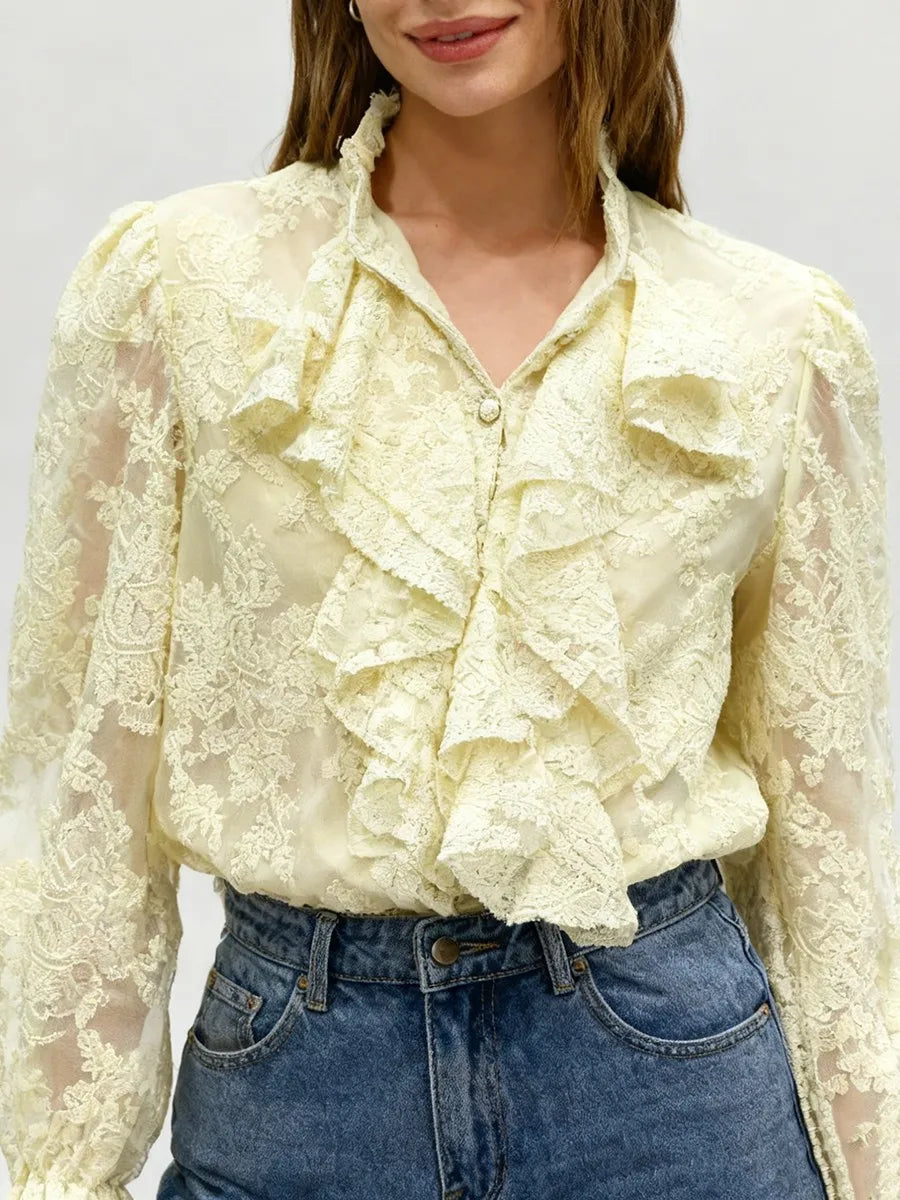 Trend4us Luxe Embroidered Ruffled Lace Blouse