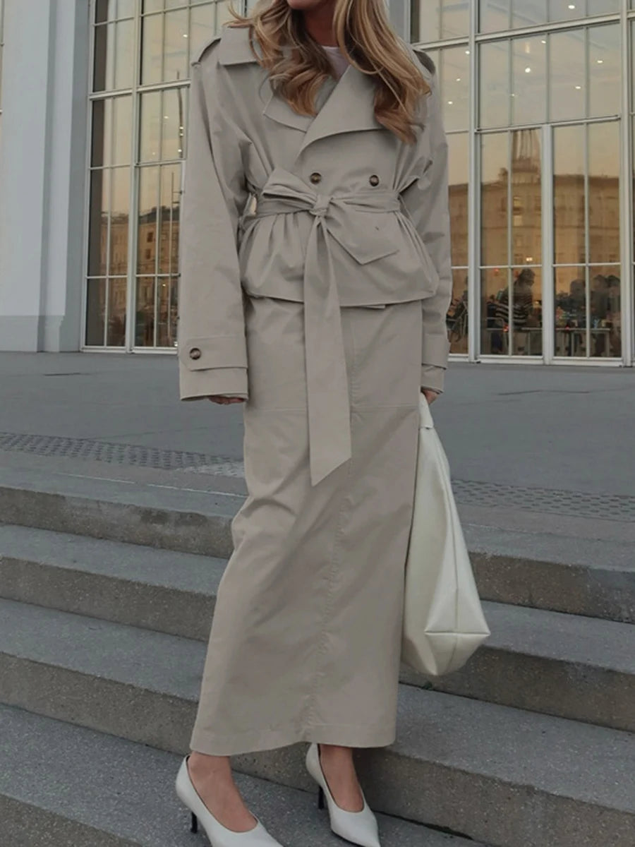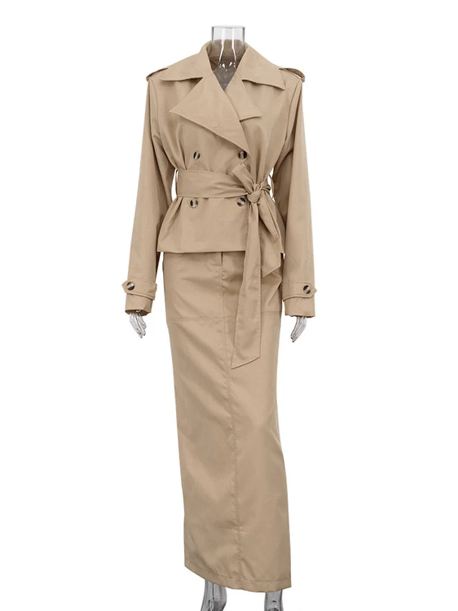Trend4us Luxe Trench Belted Maxi Skirt Set