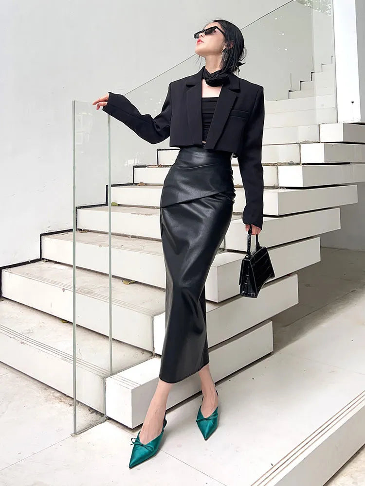 Embrace the allure of high fashion with our Chic High Waist Leather Midi Skirt. Whether you're dressing up for a special occasion or adding an edge to your everyday style, this skirt is designed to meet your fashion needs. Upgrade your wardrobe effortlessly with this classic and contemporary piece.