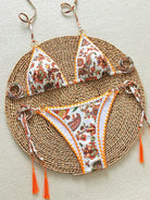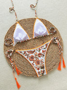 Channel effortless bohemian vibes with the Trend4us Boho Ring Tassel Bikini Set. This chic two-piece features a paisley-inspired print, triangle halter top, and side-tie bottoms with gold-tone ring accents and playful tassel ties. A standout pick for sun-soaked beach days, poolside lounging, or festival-ready swim looks.