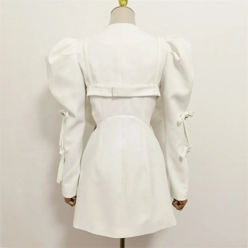 Make a bold statement with the Trend4us Couture Oversized Bow Embellished Blazer Dress. Featuring dramatic puff sleeves, crystal buttons, and a voluminous front bow, this structured mini blazer dress exudes high-fashion drama for galas, fashion events, or editorial moments.