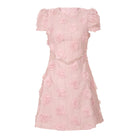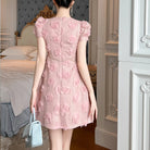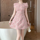 Trend4us Elegant 3D Rose Appliqué Puff Sleeve Mini Dress