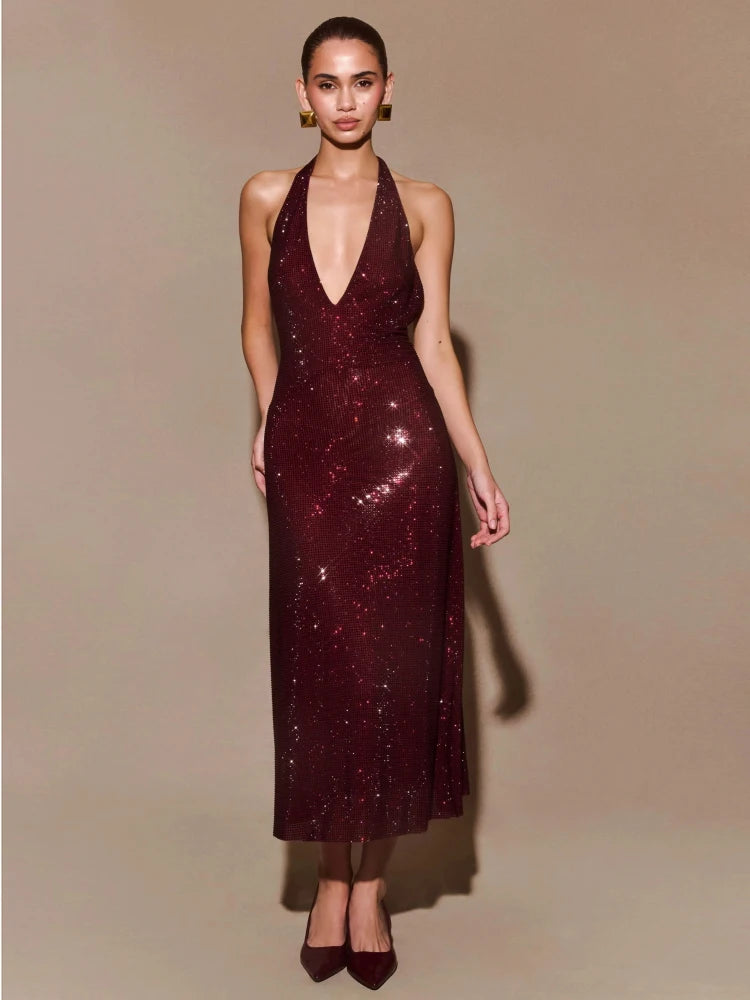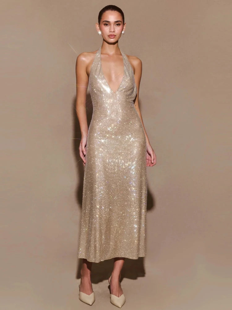 Crafted from high-quality, lightweight fabric, this gown ensures both comfort and style, making it the perfect choice for formal events, galas, or upscale soirées. The Midi-length design exudes timeless glamour, and its versatile elegance allows you to pair it with statement earrings and sleek heels to complete the look. Step into the spotlight and make a lasting impression with the Trend4us Glamorous Halter Diamonds Backless Evening Gown, your ultimate choice for unforgettable occasions.