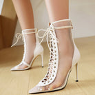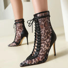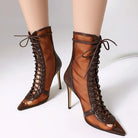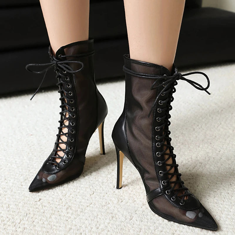 Trend4us Mesh Lace-Up Ankle Stiletto Boots