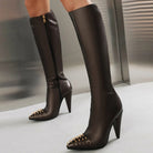 Trend4us Studded Metallic Knee-High Stiletto Boots