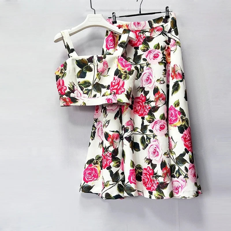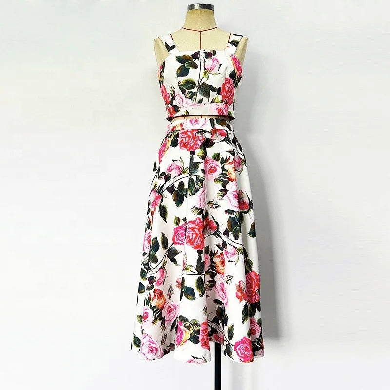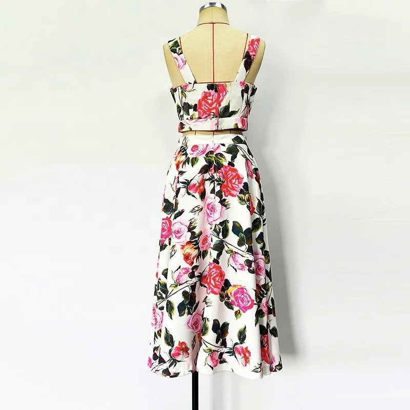 Capture timeless elegance with the Trend4us Vintage Floral Crop Top & Flared Skirt Set. Featuring a square-neck cropped top and a high-waisted, midi-length flared skirt, this set showcases a romantic rose print in vivid pink tones. Ideal for garden parties, brunch dates, or resort getaways, it offers a fresh and feminine look with a vintage twist.