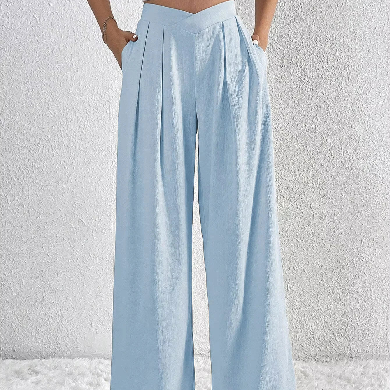 Elevate your everyday style with the Trend4us Women's Casual Pleated Wide-Leg Pants. Designed with a flattering crisscross waistband and relaxed pleats, these pants offer both comfort and sophistication. The high-waisted fit and wide-leg silhouette create an effortlessly chic look, perfect for casual outings, office wear, or weekend getaways. Crafted from a lightweight, breathable fabric for all-day ease.