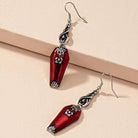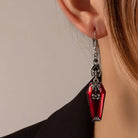 Make a bold statement this spooky season with the Trend4us Halloween Gothic Drop Earrings. Designed with striking red coffin charms accented by intricate silver-toned spiderweb details, these earrings embody gothic elegance with a Halloween twist. Lightweight yet eye-catching, they are the perfect accessory to elevate your costume, party look, or gothic-inspired everyday style.