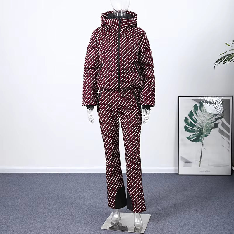 Embrace winter in style with this luxe padded hooded parka ski suit set, designed for women who demand both warmth and contemporary fashion. This coordinated two-piece ensemble features a padded hooded parka jacket paired with matching high-waisted pants, delivering complete cold-weather protection with a sleek, modern silhouette.
