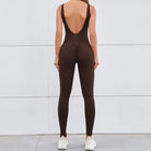 The rich coffee color creates a sophisticated, neutral palette that pairs beautifully with any activewear accessories. The backless design adds a daring edge while the seamless construction ensures comfort during any activity. Advanced fabric technology keeps you dry and comfortable whether you're at the gym, in a yoga class, or enjoying athleisure styling.