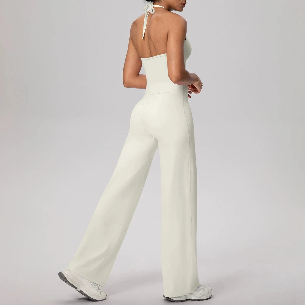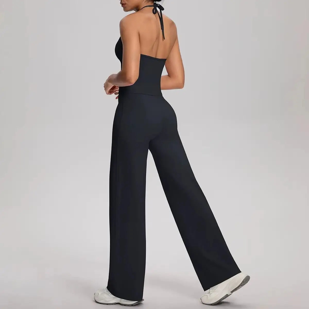 Trend4us Sculpt Sportswear Halter Top & Wide-Leg Pants Set