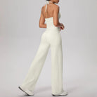 The light ivory color creates a fresh, sophisticated palette that pairs beautifully with any activewear. The sculpting halter top provides support and coverage while the wide-leg pants offer comfortable movement and an elongating silhouette. Advanced fabric technology ensures you stay dry and comfortable whether you're at the gym, running errands, or enjoying a casual outing.