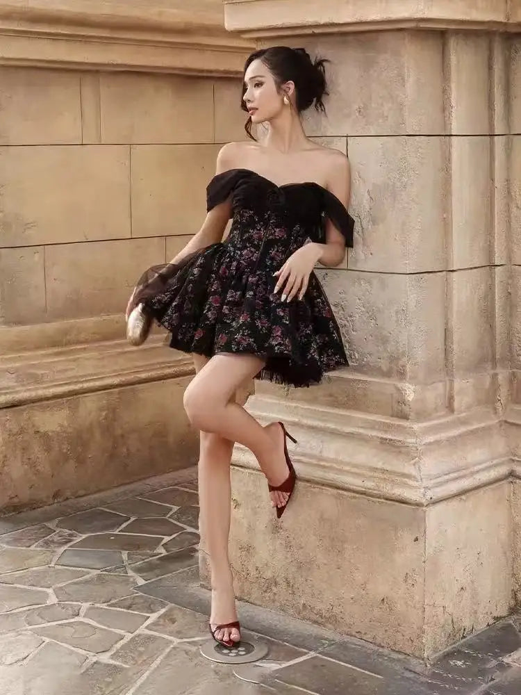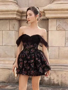 Embrace romantic elegance in the Trend4us Off-Shoulder Floral Mesh Patchwork Corset Mini Dress—a feminine statement piece that blends delicate floral detailing with structured corset styling. This enchanting A-line silhouette combines sheer mesh panels with figure-flattering construction for a look that's both sweet and sophisticated.