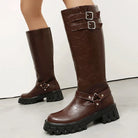 Trend4us Buckle Strap Chunky Knee-High Boots