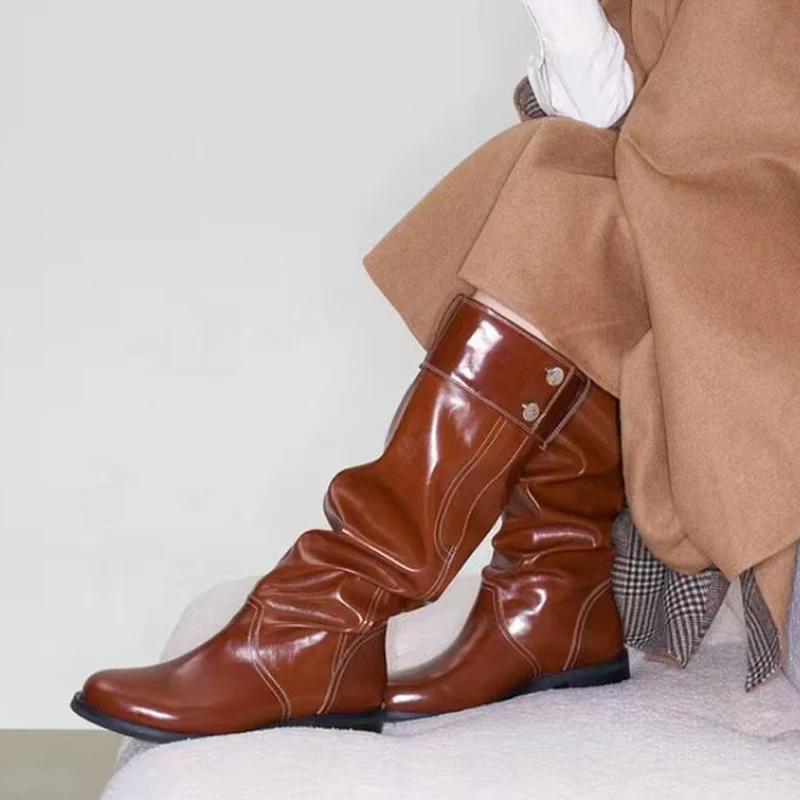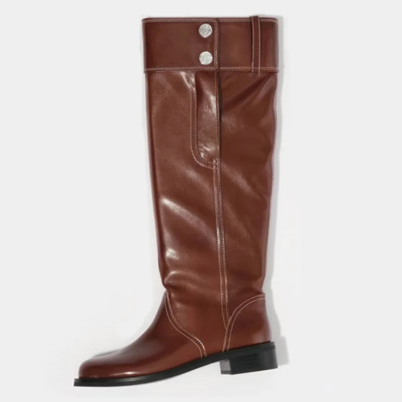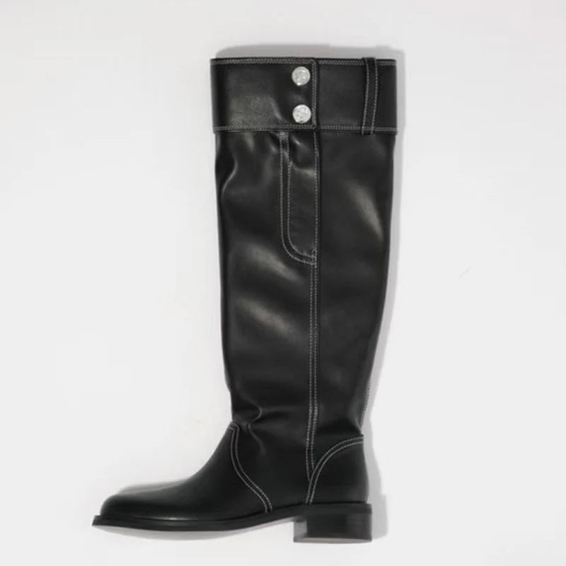 Trend4us Button-Detail Knee-High Leather Slouchy Boots