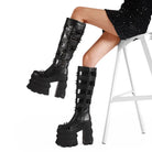 Trend4us Gothic Buckle Strap Platform Knee-High Boots