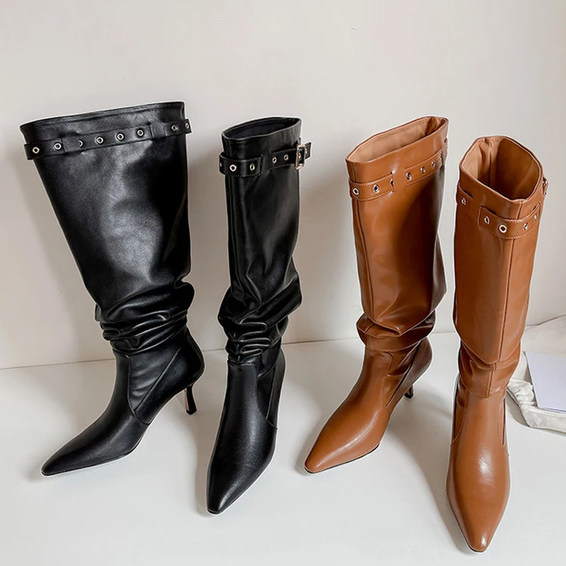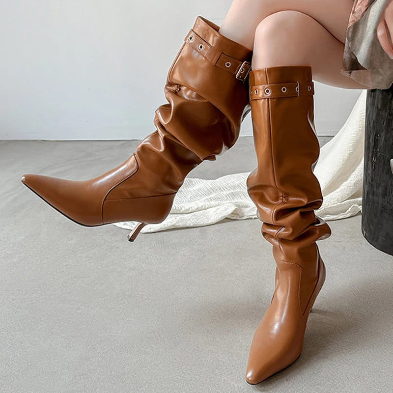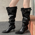 Trend4us Luxe Buckled Slouchy Stiletto Knee-High Boots