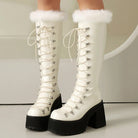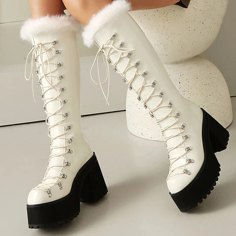 Trend4us Luxe Faux Fur Lace-Up Knee-High Boots