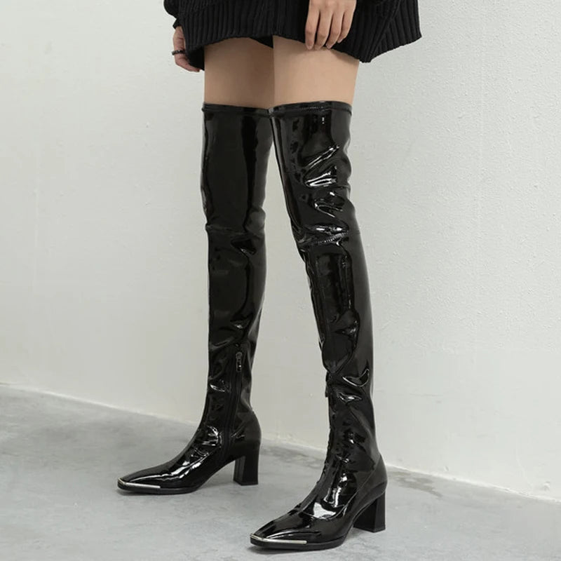 Trend4us Luxe Glossy Over-The-Knee High-Heel Boots