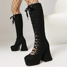 Trend4us Luxe Lace-Up Platform Knee-High Boots
