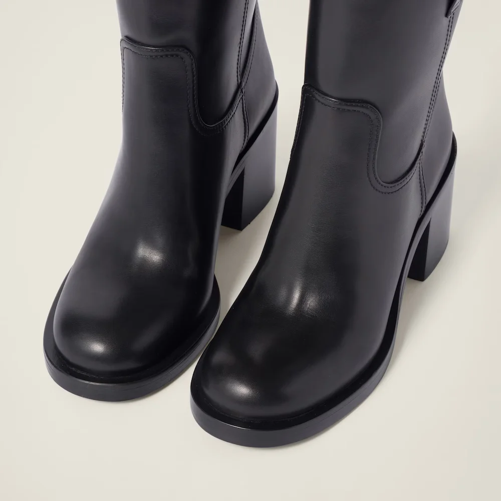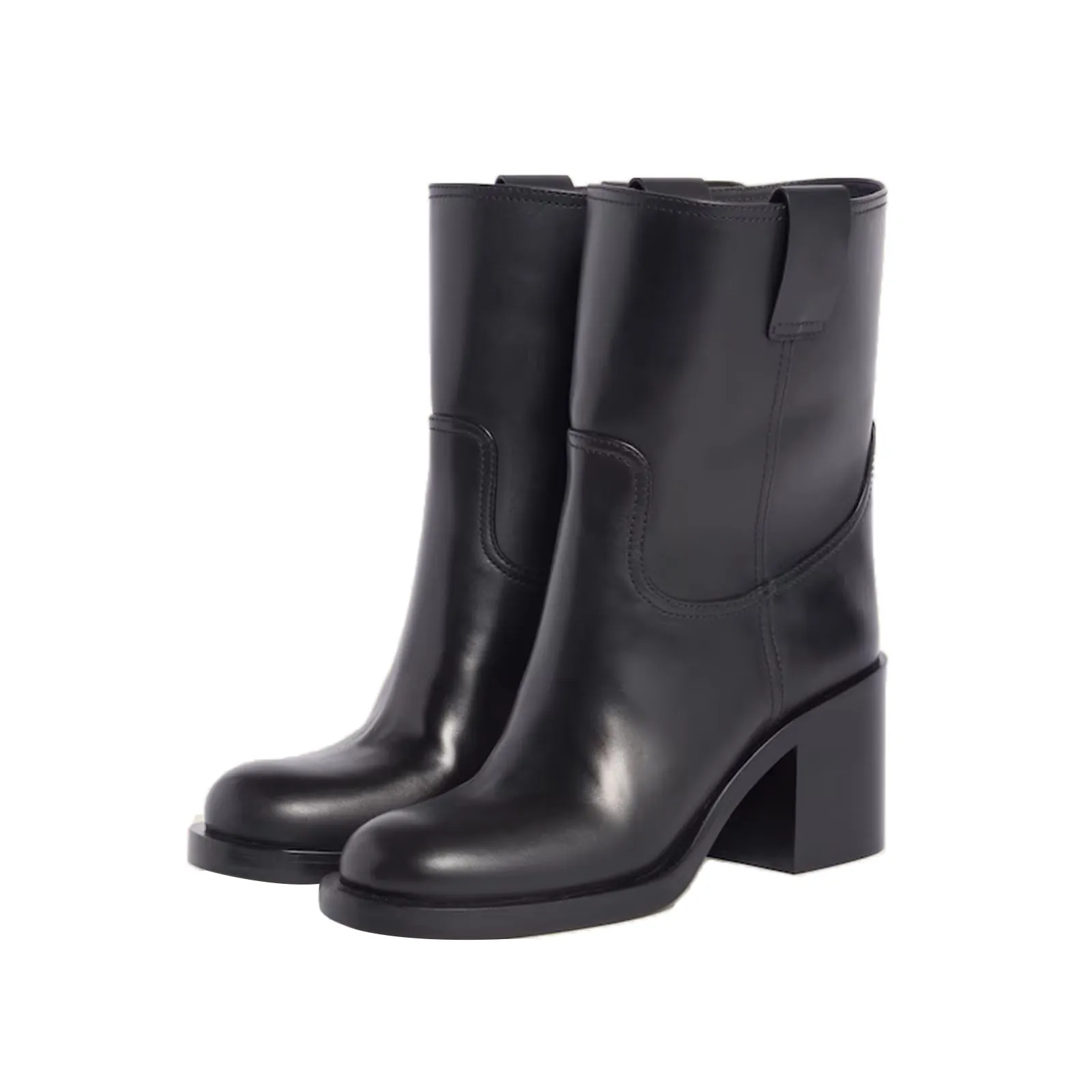 The sturdy block heel delivers confident height while maintaining all-day comfort, making these boots ideal for workdays, city strolls, and evening outings. A softly rounded toe, minimalist seam detailing, and subtle pull tabs complete the design with understated polish. Versatile and seasonless, this pair pairs seamlessly with tailored trousers, denim, knit dresses, or midi skirts.