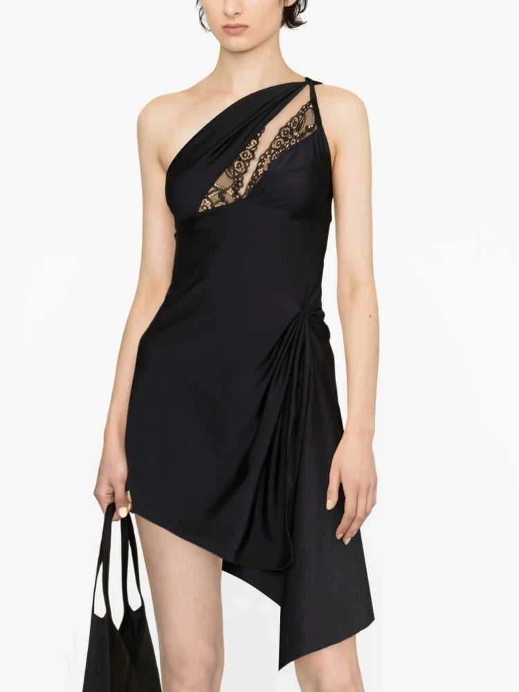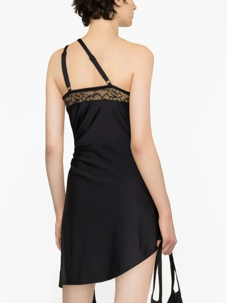 Trend4us Asymmetrical One-Shoulder Lace Mini Dress